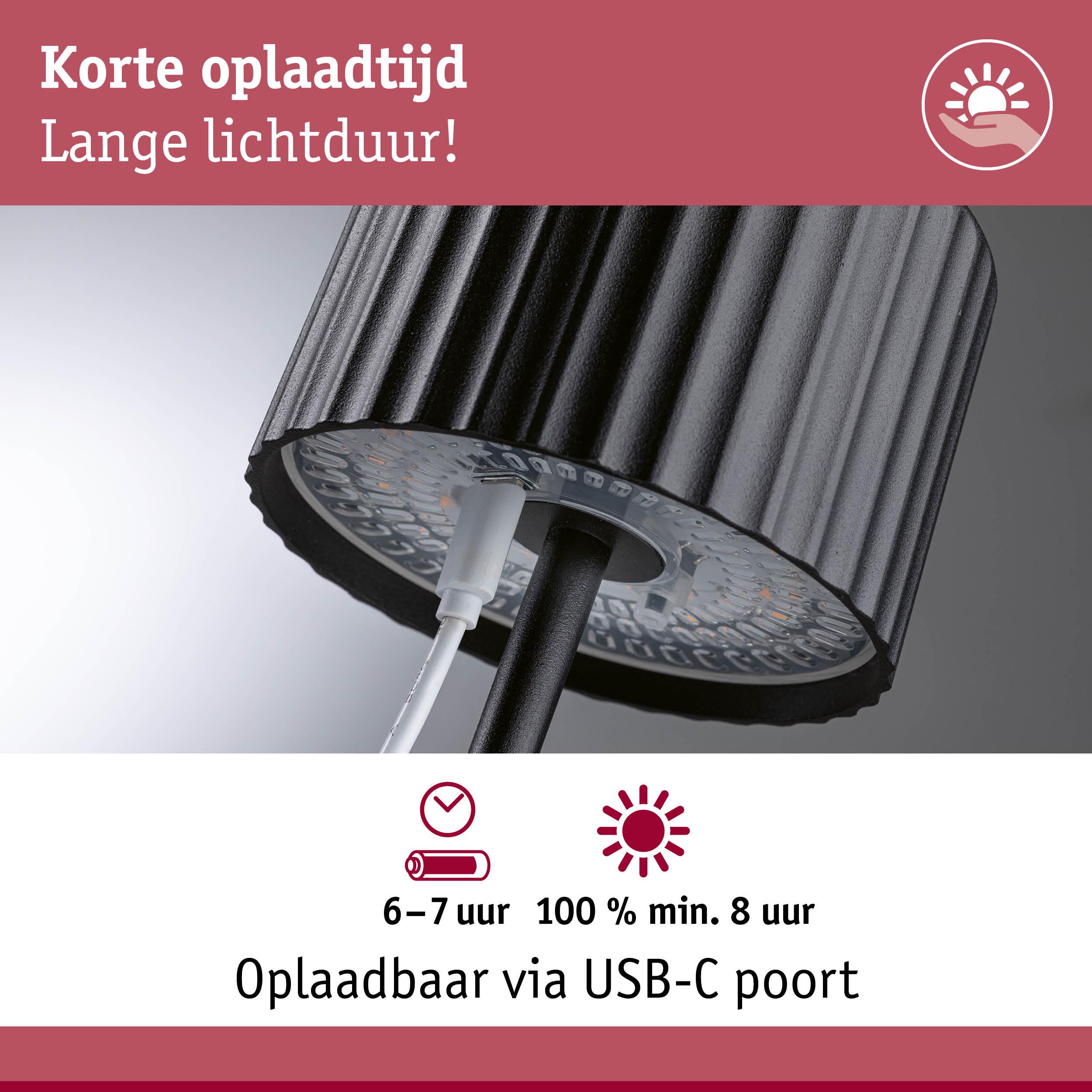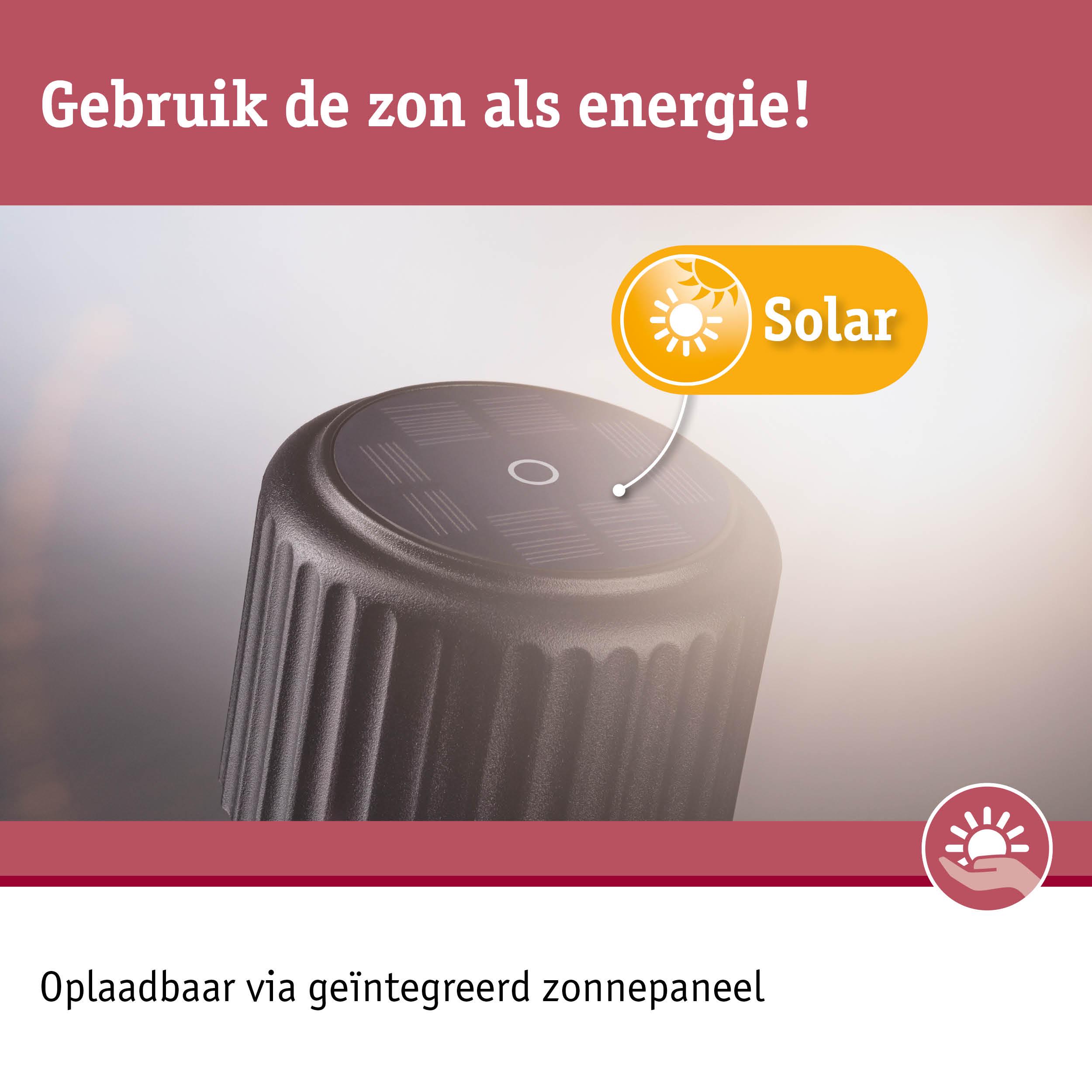 De mobiele Solar tafellamp Else in Zwart met USB-C accu is een absoluut highlight voor binnen en buiten. Met zijn aangenaam warmwitte licht creëert hij een uitnodigende sfeer. De geïntegreerde USB-C accu zorgt voor snel opladen binnen 5 - 6 uur, zelfs zonder zonlicht, en de lamp brandt tot 10 uur met maximale helderheid. Het strakke en tijdloze ontwerp van het armatuur past zich aan elke sfeer en situatie aan en maakt universeel en flexibel gebruik mogelijk. Op het terras, in de tuin of in de woonkamer, de Solar tafellamp past harmonieus in elke omgeving. Het hoogwaardige materiaal en de zorgvuldige verwerking garanderen een lange levensduur. Met de touchschakelaar kan de lamp worden in- en uitgeschakeld. De mobiele Solar tafellamp Else is de perfecte keuze voor iedereen die op zoek is naar een flexibele lichtbron die zowel binnen als buiten gebruikt kan worden.