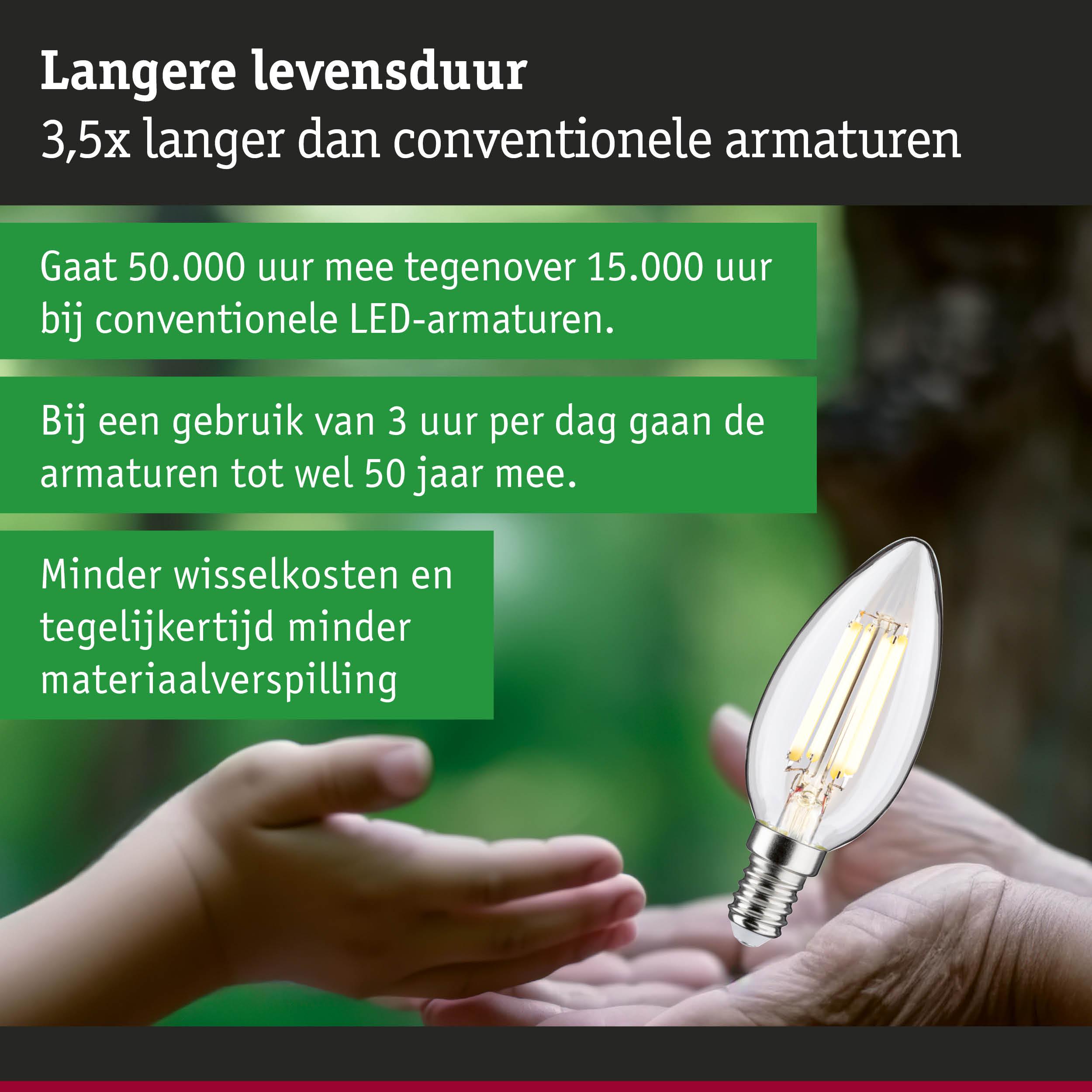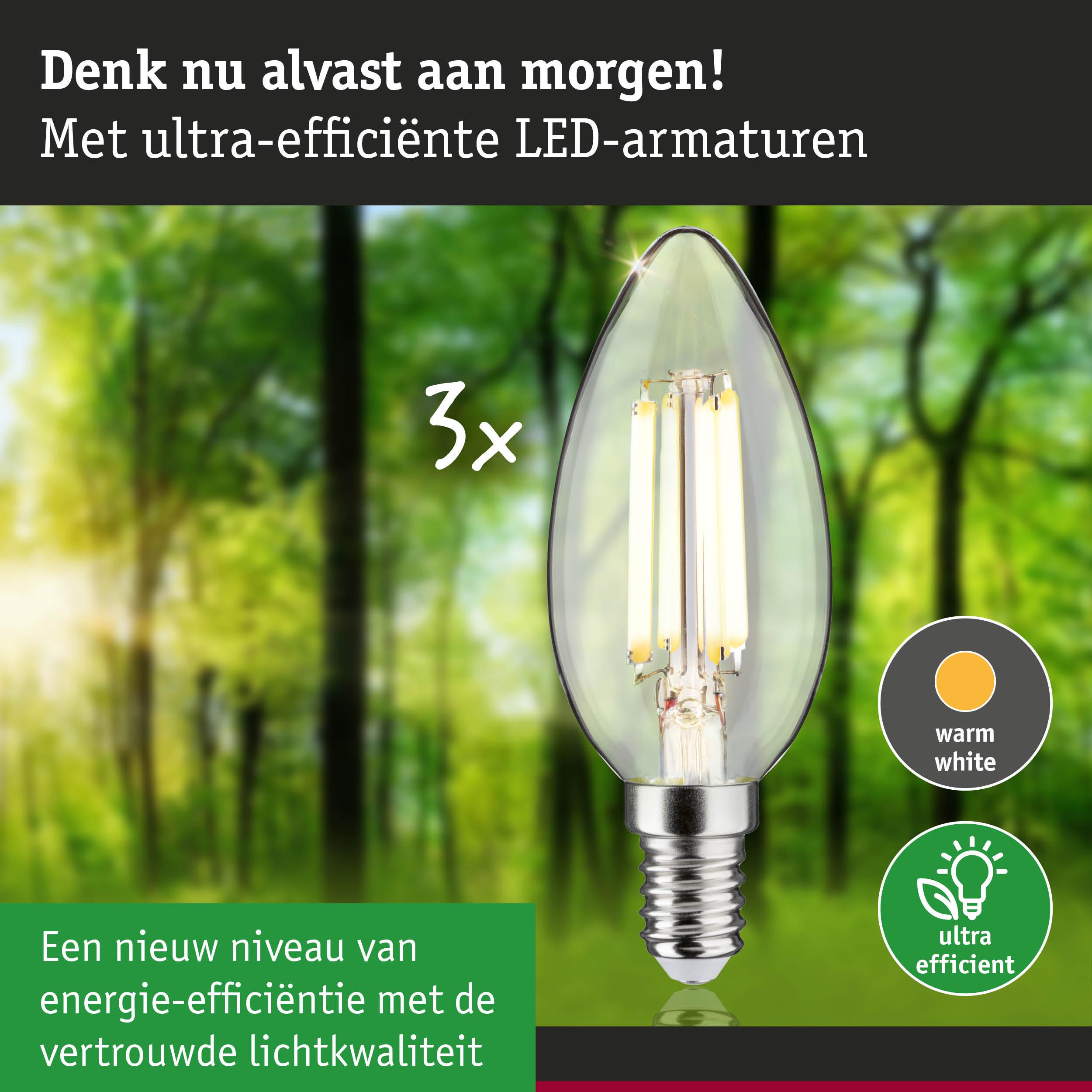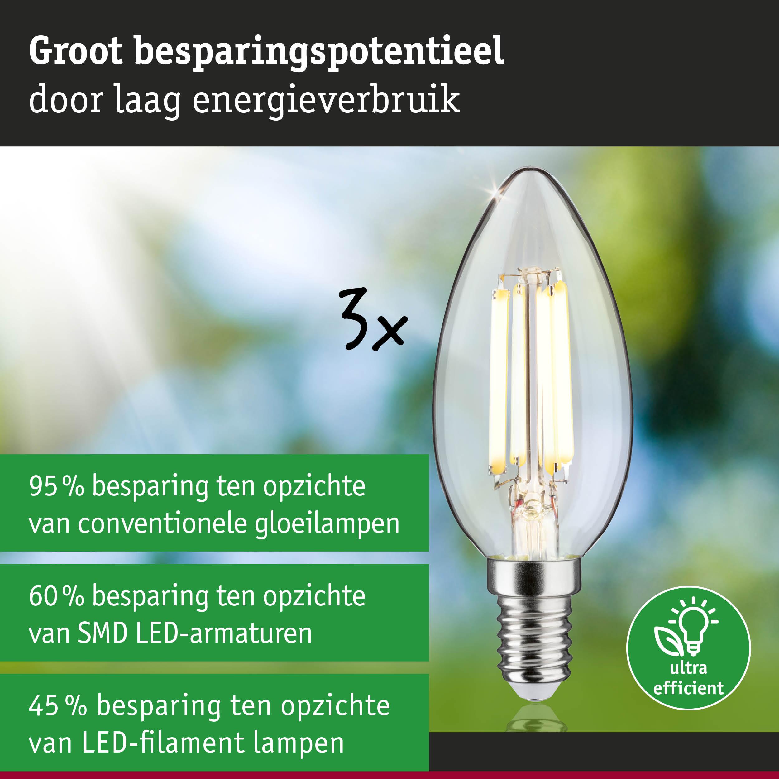 De uiterst efficiënte verlichtingsmiddelen van Eco-Line combineren innovatie met duurzaamheid. Door het 60% lagere energieverbruik en de aanzienlijk langere levensduur ten opzichte van standaard LED-lampen zijn de energiekosten aanzienlijk lager en daarnaast is het ook nog goed voor het milieu. De kaarsvormige verlichtingsmiddelen (set van 3) met 3000 K, een vermogen van 3x2,5 W en 3x525 lm creëren een aangenaam gelijkmatig licht zonder een groene gloed. Door hun bouwvorm zijn kaarslampen vooral geschikt voor het gebruik in lusters, wand- en plafondlampen en zorgen zo met hun aangename licht voor een heerlijke, gezellige sfeer in elke woning. De lamp past in elke gangbare E14 fitting. Het handige multipakket maakt het mogelijk meteen meerdere armaturen uit te rusten en zo een gehele ruimte in stralend licht te baden.