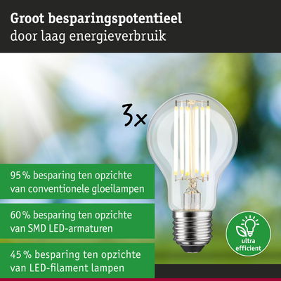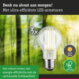 De uiterst efficiënte verlichtingsmiddelen van Eco-Line combineren innovatie met duurzaamheid. Door het 60% lagere energieverbruik en de aanzienlijk langere levensduur ten opzichte van standaard LED-lampen zijn de energiekosten aanzienlijk lager en daarnaast is het ook nog goed voor het milieu. De filament LED peer met 3000K, een vermogen van 5W en 1055lm creëert een aangenaam gelijkmatig licht zonder groene gloed. De lamp past in elke gangbare E27 fitting. Zelfs grote lampenkappen worden gelijkmatig verlicht. De Paulmann LED-lampen met Eye Friendly label bieden oogvriendelijk en comfortabel licht. Bij het werken, lezen of ontspannen zorgen de lampen voor het beste zichtcomfort.