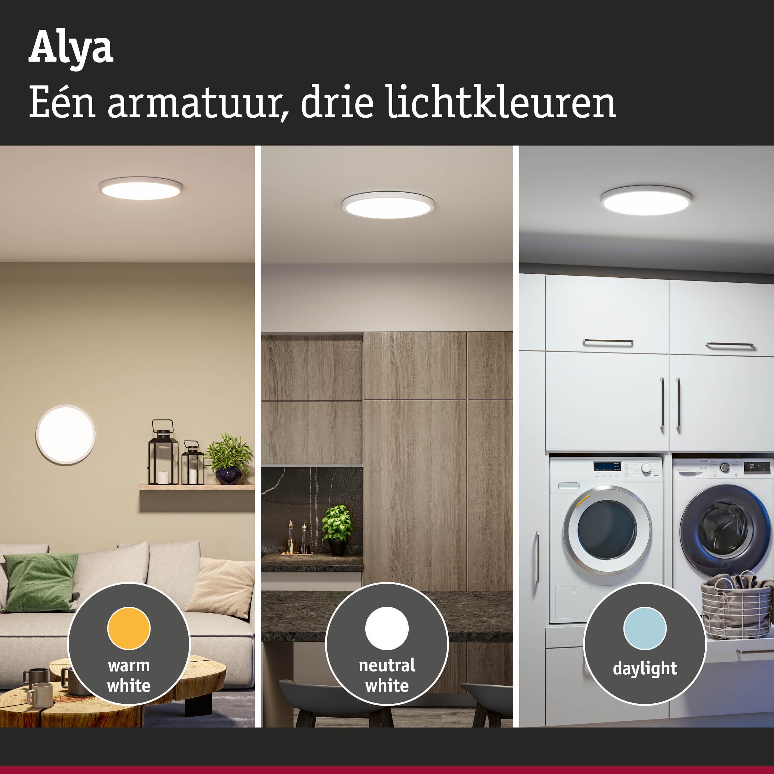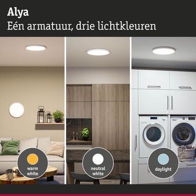 Het LED opbouwpaneel Alya met een diameter van 400mm biedt veelzijdige mogelijkheden om individuele verlichtingsvereisten in alle ruimtes te realiseren. Met de innovatieve White-Select-functie kan de lichtkleur voor de installatie op basis van verschillende toepassingsgebieden of persoonlijke behoeften worden gekozen. Dankzij de White Select functie is het paneel in alle ruimtes bruikbaar zonder beperkingen. Warmwit licht voor de woonkamer, neutraalwit licht voor de keuken of daglicht wit licht voor de hobbykamer of kelderruimtes - het Alya paneel biedt altijd de juiste lichtkleur. Met de verschillende lichtkleuren van 3000K, 4000K en 6500K biedt het paneel een flexibele verlichtingsoplossing voor elke behoefte. Het subtiele design en de vlakke constructie voegen zich op een harmonieuze manier in elke omgeving en zorgen voor een gelijkmatige en aangename verlichting.