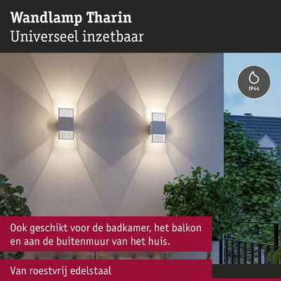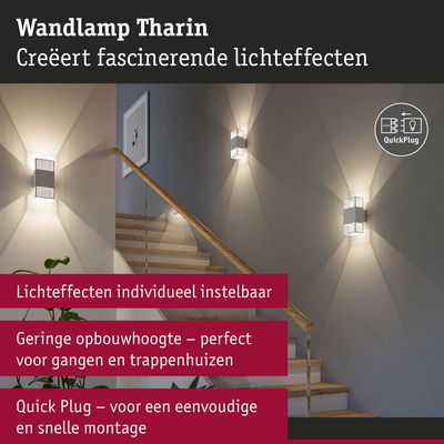 Met zijn fascinerende lichteffect door de uitsparingen van lijnen wordt de wandlamp Tharin in de kleur Wit een echte blikvanger binnen en buiten. Hij is uitgerust met 2x3,7W vast ingebouwde LED-fluorescentielampen en is door zijn geringe opbouwdiepte bijzonder geschikt voor de verlichting in de gang en de trap. Dankzij de IP44-bescherming en het gebruik van hoogwaardig roestvrij edelstaal kan de wandlamp Tharin niet alleen in alle binnenruimtes, maar ook in de badkamer, op het balkon en aan de muur van uw huis worden gemonteerd. De onafhankelijk van elkaar verstelbare lichtkegels naar boven en beneden maken individuele lichteffecten mogelijk, die elke omgeving een indrukwekkende sfeer geven. De wandlamp met een kleurtemperatuur van 3000K zorgt daarbij voor een gezellige verlichting. Hoogwaardige componenten garanderen een lange levensduur van minimaal 30.000 uur. De innovatieve montagestekker QuickPlug maakt een tijdbesparende installatie mogelijk dankzij het eenvoudige steeksysteem.