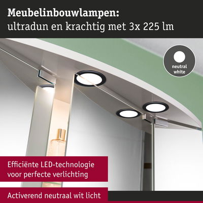 LED-meubelinbouwlampen Set van 3 rond 65mm 3x2,5W 3x180lm 230/12V 4000K Zwart mat