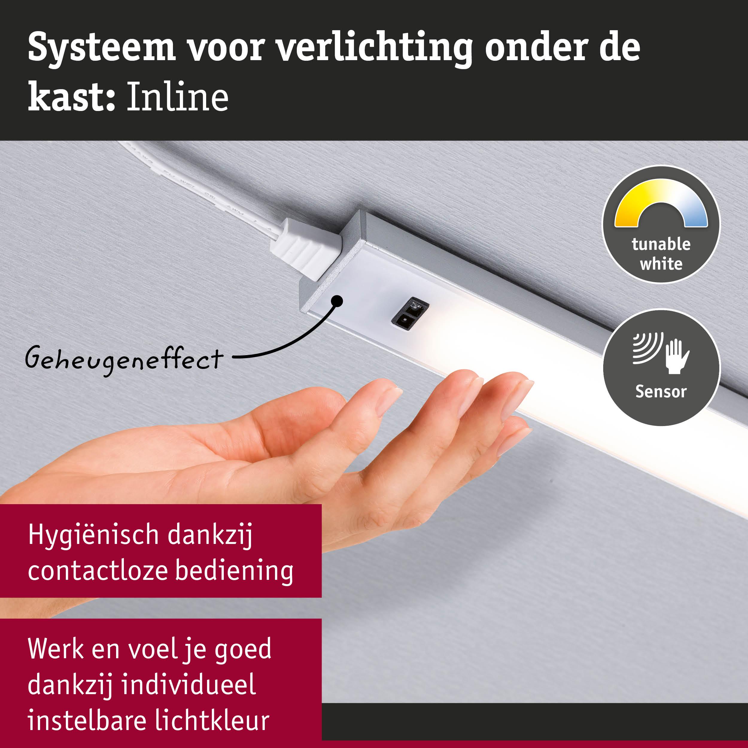 De uitbreidingsset bestaat uit twee meubellampen Inline in sober Chroom mat en een lengte van 550x26mm en is de perfecte aanvulling op de starterset Inline. De armaturen zijn een elegante oplossing om het keukenwerkvlak optimaal te verlichten. De armaturen bestaan uit hoogwaardige materialen die gemakkelijk te reinigen zijn, zodat ze probleemloos schoon gehouden kunnen worden. Met de PIR-sensor kun je de lampen contactloos in- en uitschakelen, wat ook bijdraagt aan de hygiënische werkwijze. Met de functie tunable white kan het licht individueel aangepast worden aan de behoeften, of het licht nu dient om geconcentreerd te werken of om te ontspannen in een gezellige sfeer. Een bijzonder highlight is het memory-effect, dat de ingestelde lichtkleur bewaart.