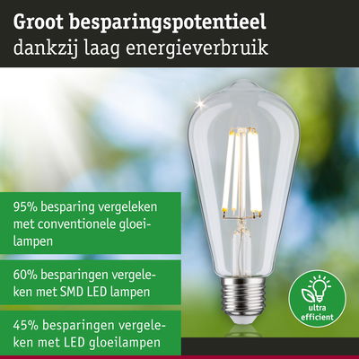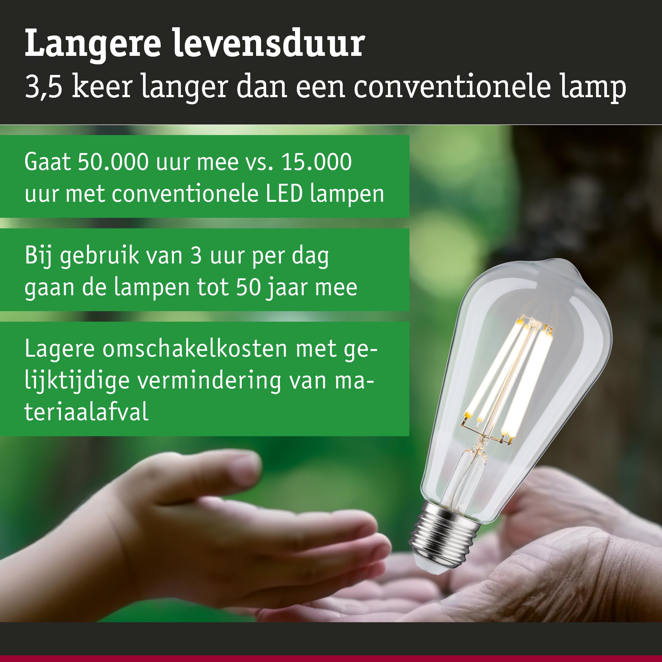 De uiterst efficiënte verlichtingsmiddelen van Eco-Line combineren innovatie met duurzaamheid. Door het 60% lagere energieverbruik en de aanzienlijk langere levensduur ten opzichte van standaard LED-lampen zijn de energiekosten aanzienlijk lager en daarnaast is het ook nog goed voor het milieu. De heldere filament kolflamp met 3000K, een vermogen van 4W en 840lm verspreidt licht zonder groene gloed in alle richtingen. Kolflampen zorgen voor het perfecte vintage gevoel en zijn een echte blikvanger in retropendels. De lamp heeft een warmwitte lichtkleur en past in elke normale E27-fitting. De Paulmann LED-lampen met Eye Friendly label bieden oogvriendelijk en comfortabel licht. Bij het werken, lezen of ontspannen zorgen de lampen voor het beste zichtcomfort.