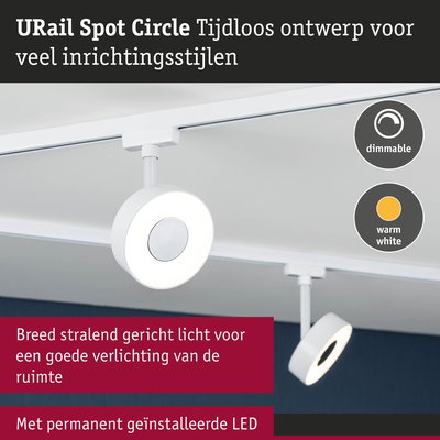 URail Railspot Circle 180lm 5W 3000K dimbaar 230V Signaalwit