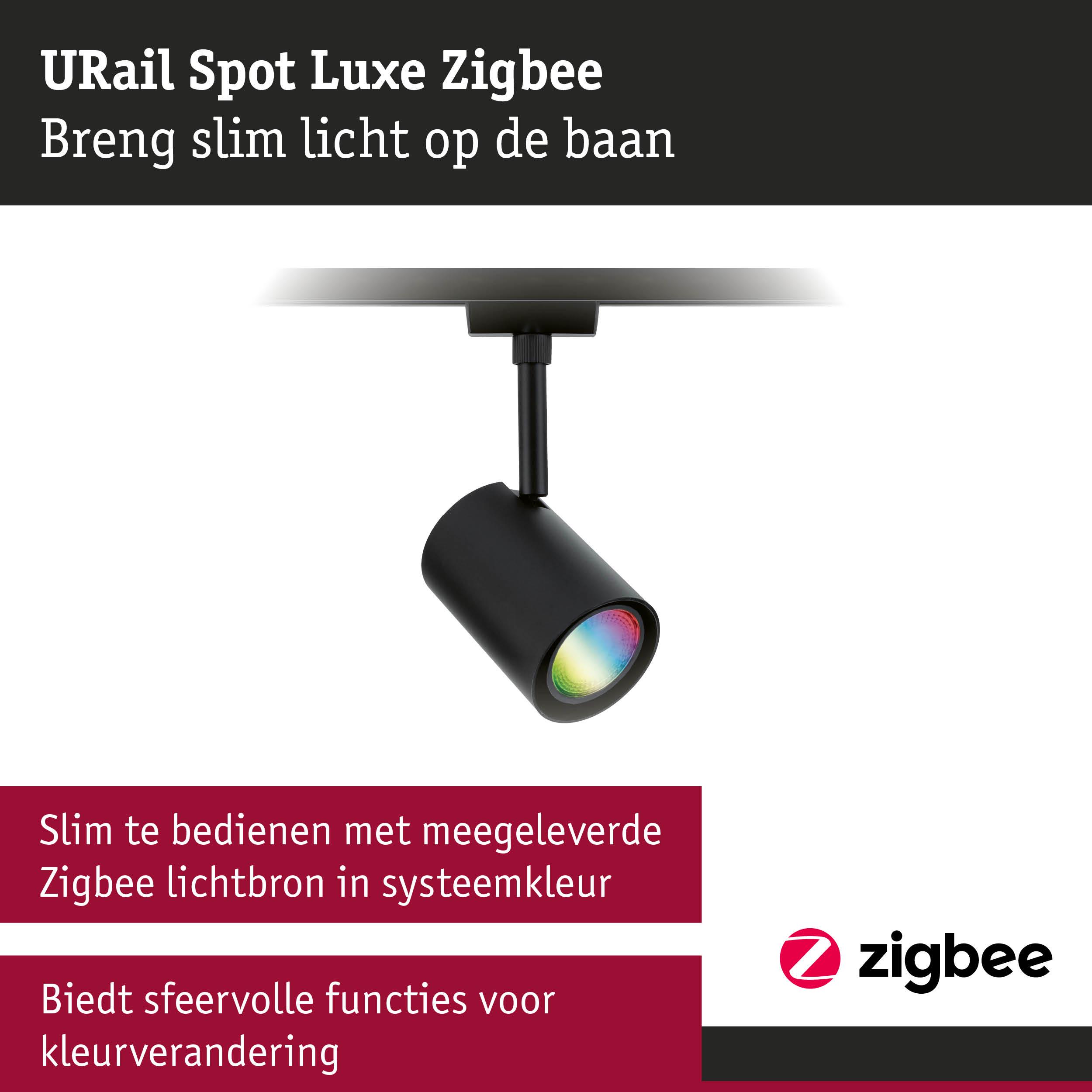 URail Railspot Smart Home Zigbee 3.0 Luxe GU10 350lm 4,8W RGBW+ dimbaar 230V Zwart mat