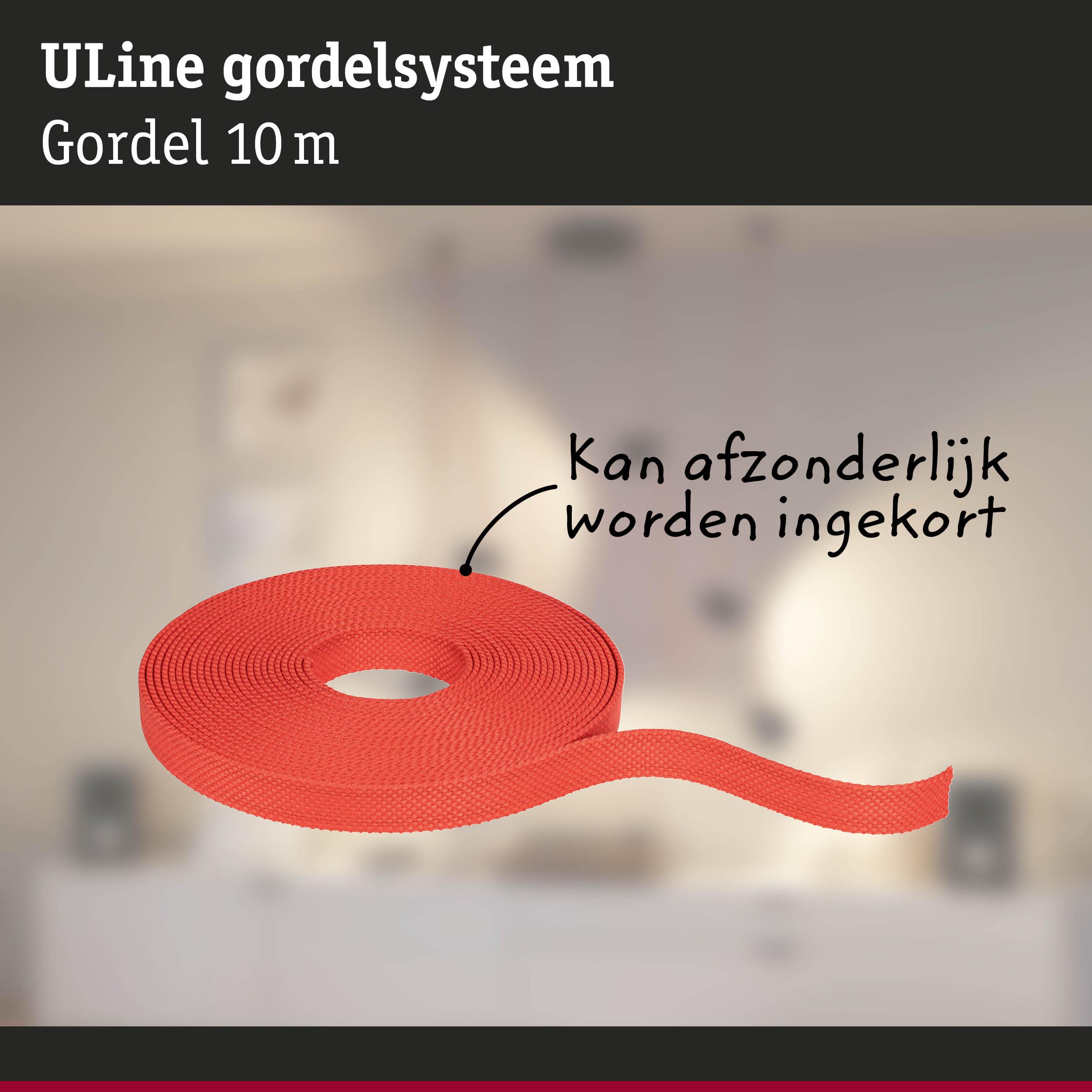 De ULine riem dient als basis voor het ULine riem-systeem. Hij is verkrijgbaar in twee lengtes (5 m en 10 m) en vijf kleuren - van klassiek zwart tot ongewoon oranje - en kan overal in de kamer worden geplaatst en indien nodig met een schaar worden ingekort. Bijpassende armaturen kunnen naar wens op de riem worden geplaatst. De 2,1 cm brede riem wordt met behulp van geschikte beugels aan de wand, het plafond of de vloer bevestigd. Zo kan in slechts een paar stappen een persoonlijk verlichtingsconcept worden geïmplementeerd. Het scheurbestendige en duurzame Textiel, Koper van de riem zorgt voor een lange levensduur en een hoge belastbaarheid. De banden zijn gecoat en gemakkelijk schoon te maken. Een speciaal hoogtepunt is de interne, onzichtbare kabelgeleiding, die zorgt voor een strakke look zonder zichtbare draden. Alles uit de riemen wordt geleverd met twee eindkappen van silicon voor een esthetische afwerking. Het ULine riem-systeem is een innovatieve oplossing voor unieke verlichtingservaringen in alle ruimtedimensies en maakt gerichte lichteffecten op wanden, plafonds en vloeren mogelijk.