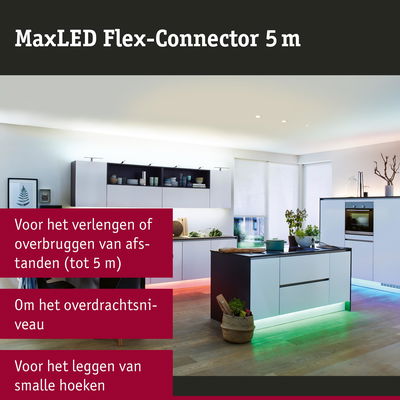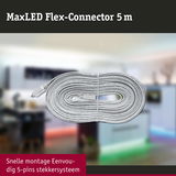 MaxLED verbindingskabel voor de verlenging of overbrugging van afstanden tot vijf meter, voor het vereffenen van oneffenheden en voor het installeren in kleine radii of voor de verandering in het installatievlak. 5-polig voor 24 V.