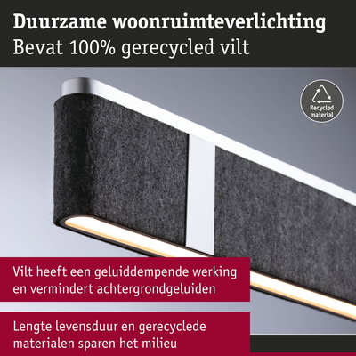 • Duurzaam gerecycled materiaal (ten minste 60% gerecycled gehalte in het vilt)