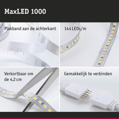 Aparte strips voor de uitbreiding van de MaxLED basissets indien nodig inkortbaar. De coating beschermt tegen spatwater en stof. Kleurtemperatuur: 2700K warmwit