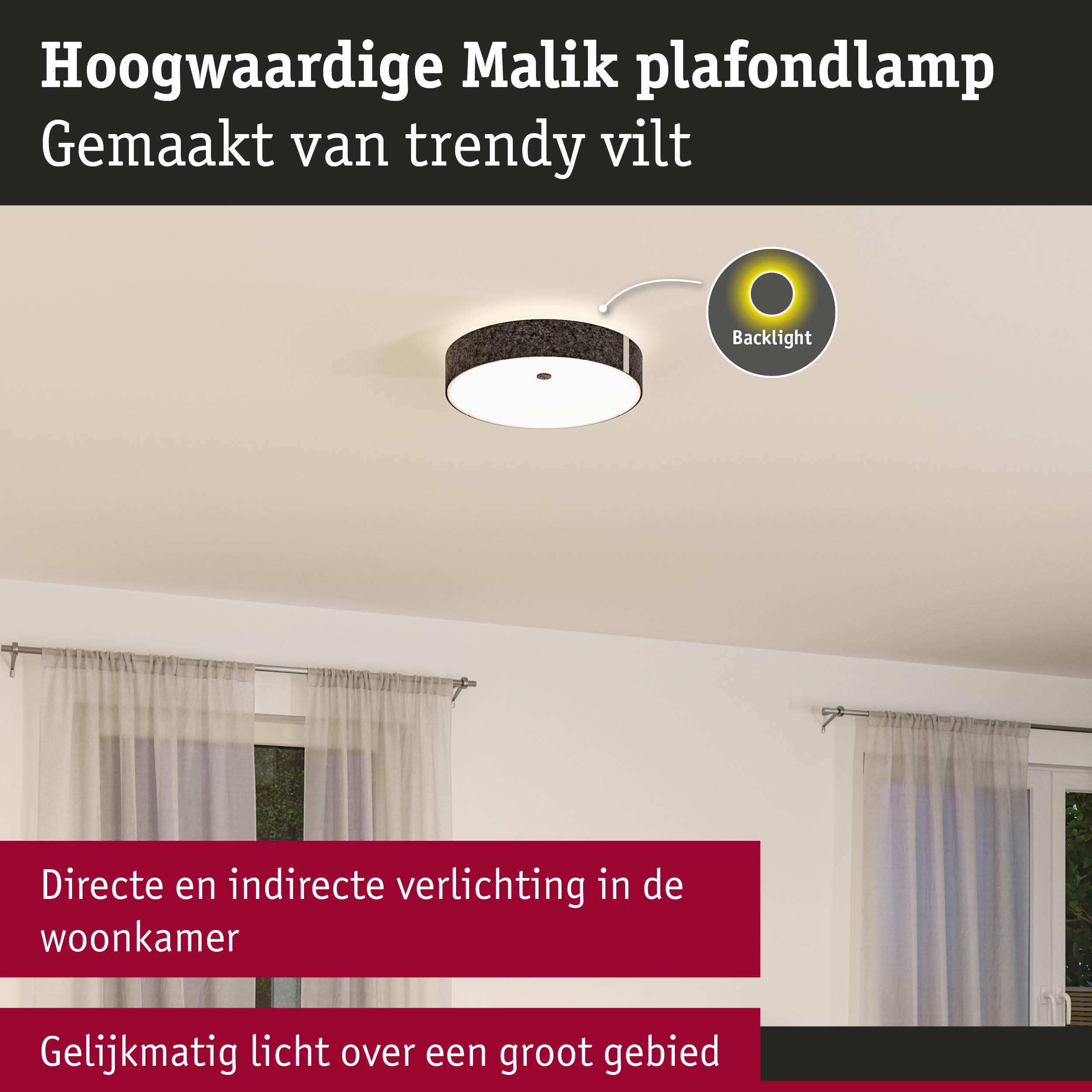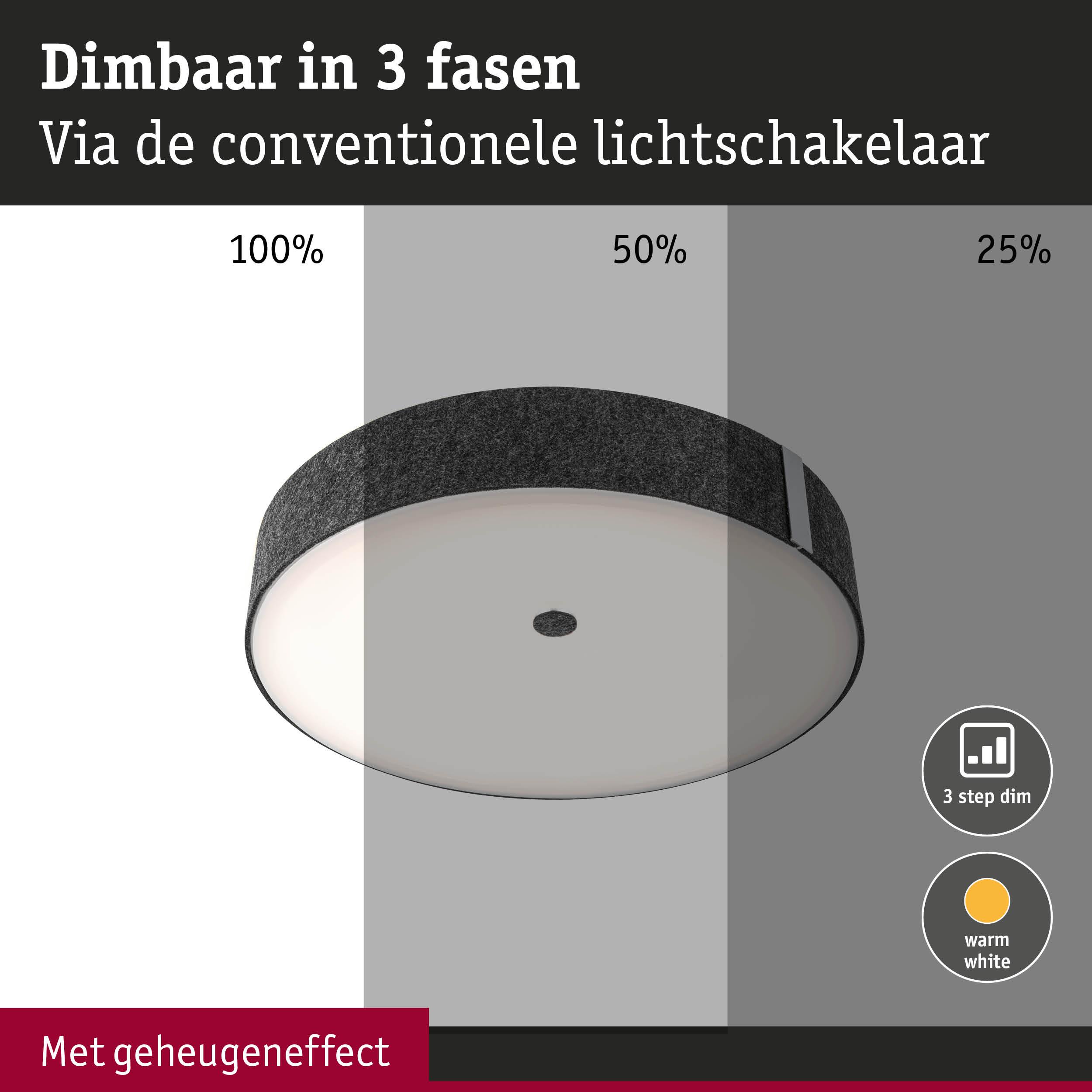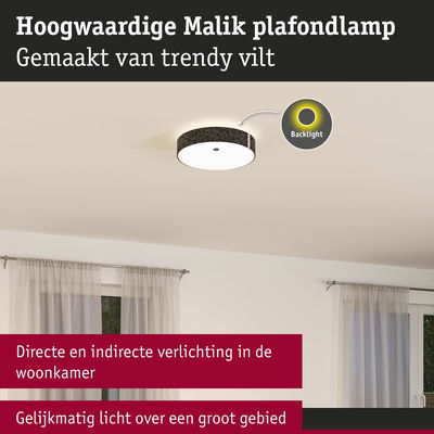 De LED plafondlamp Malika van vilt in Antraciet met 2300lm maakt niet alleen indruk met zijn moderne en eenvoudige ontwerp, maar creëert ook een aangename sfeer en vermindert storende achtergrondgeluiden. Bovendien is hij vervaardigd van duurzaam, gerecycled materiaal. De extra backlight techniek creëert een bijzondere feel-good ambiance en geeft de plafondlamp een bijna zwevende lichtoptiek. De warme kleurtemperatuur creëert een gezellige sfeer voor ontspannende uren thuis. De lamp kan met een gangbare wandschakelaar in 3 niveaus worden gedimd. Dankzij de memory-functie onthoudt de lamp altijd de voorkeursinstellingen.