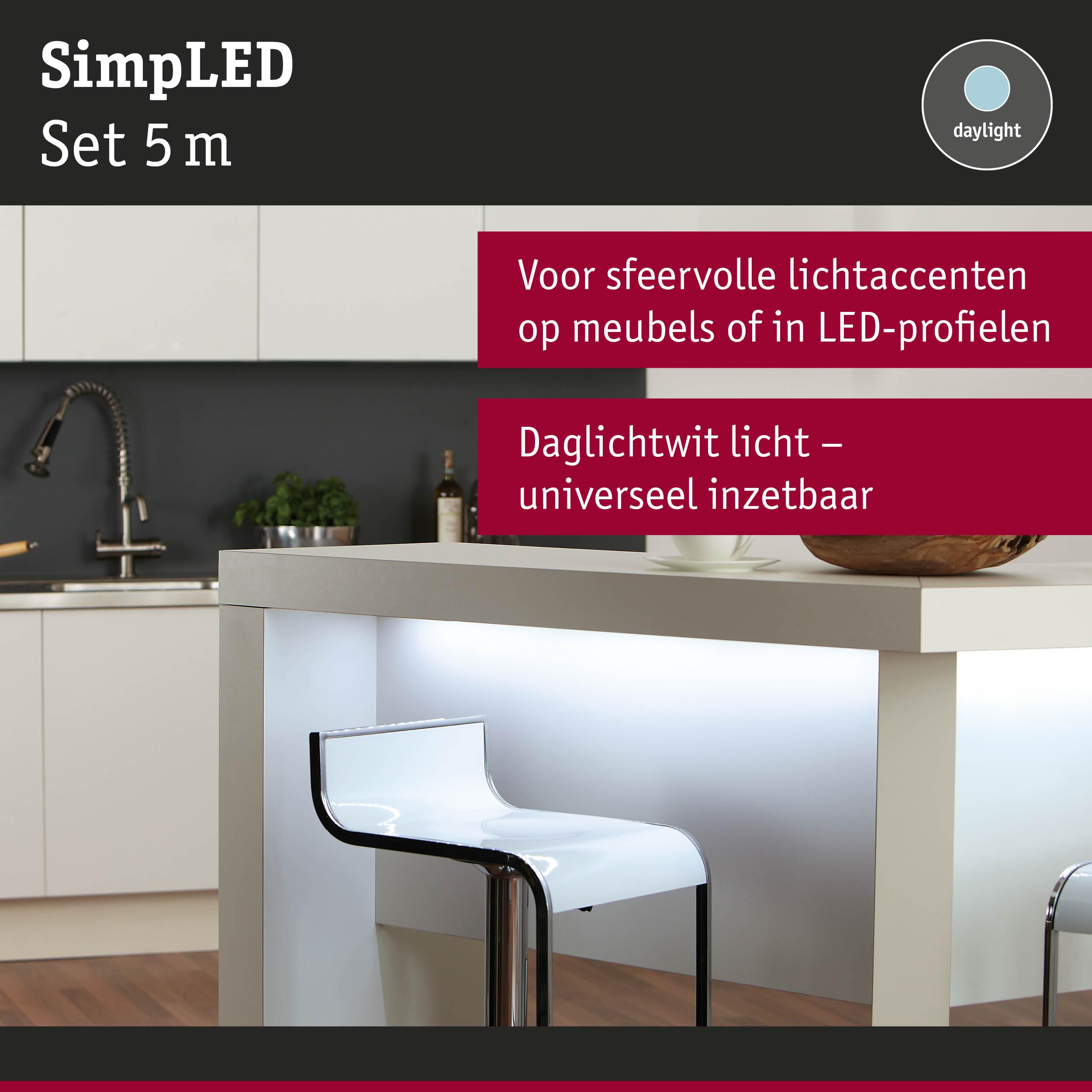 SimpLED LED Strip Daglichtwit Volledige set 5m gecoat 11W 310lm/m 60 LEDs/m 6500K 18VA