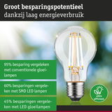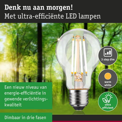 De uiterst efficiënte LED-verlichtingsmiddelen van LED Eco-Line combineren innovatieve techniek met duurzaamheid en zorgen voor een efficiënte en stijlvolle verlichting. Dankzij het 60% lagere energieverbruik en de aanzienlijk langere levensduur ten opzichte van standaard LED-lampen zijn de energiekosten beduidend lager en daarnaast is het ook nog goed voor het milieu. De heldere filament LED peer past in elke gangbare E27-fitting en creëert met 3000 K, een vermogen van 5,7W een aangenaam gelijkmatig warmwit licht zonder groene gloed. Zelfs grote lampenkappen worden gelijkmatig verlicht, waardoor in elke ruimte een gezellige sfeer wordt gecreëerd. Naar wens kan de helderheid van het verlichtingsmiddel in 3 stappen via een gangbare lichtschakelaar worden gedimd. De dimmer beschikt over een memory-functie. De Paulmann LED-lampen met Eye Friendly label bieden oogvriendelijk en comfortabel licht. Of u nu aan het werken, lezen of ontspannen bent, de lampen zorgen voor het beste zichtcomfort.