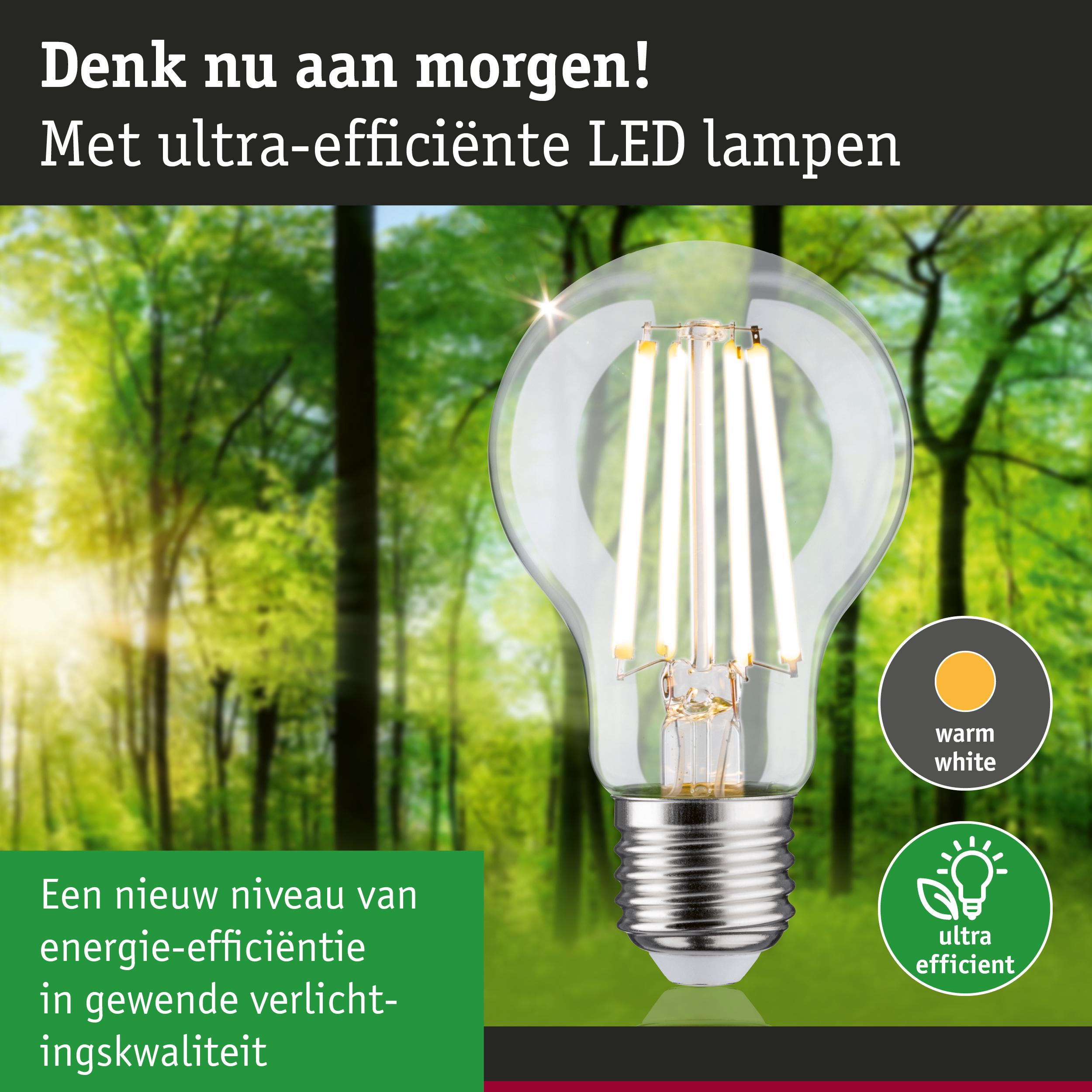 De uiterst efficiënte verlichtingsmiddelen van Eco-Line combineren innovatie met duurzaamheid. Door het 60% lagere energieverbruik en de aanzienlijk langere levensduur ten opzichte van standaard LED-lampen zijn de energiekosten aanzienlijk lager en daarnaast is het ook nog goed voor het milieu. De filament LED peer met 3000K, een vermogen van 4W en 840lm creëert een aangenaam gelijkmatig licht zonder groene gloed. De lamp past in elke standaard E27 fitting. Zelfs grote lampenkappen worden gelijkmatig verlicht. De Paulmann LED-lampen met Eye Friendly label bieden oogvriendelijk en comfortabel licht. Bij het werken, lezen of ontspannen zorgen de lampen voor het beste zichtcomfort.