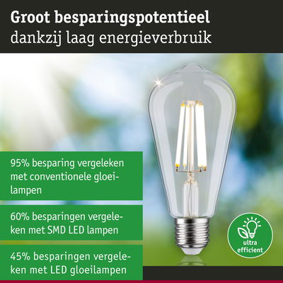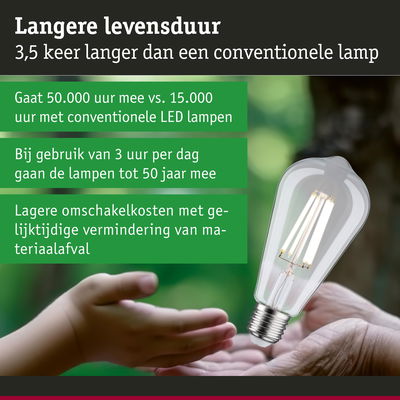De uiterst efficiënte verlichtingsmiddelen van Eco-Line combineren innovatie met duurzaamheid. Door het 60% lagere energieverbruik en de aanzienlijk langere levensduur ten opzichte van standaard LED-lampen zijn de energiekosten aanzienlijk lager en daarnaast is het ook nog goed voor het milieu. De heldere filament kolflamp met 4000K, een vermogen van 4W en 840lm verspreidt licht zonder groene gloed in alle richtingen. Kolflampen zorgen voor het perfecte vintage gevoel en zijn een echte blikvanger in retropendels. De lamp heeft een neutraalwitte lichtkleur en past in elke standaard E27-fitting. De Paulmann LED-lampen met Eye Friendly label bieden oogvriendelijk en comfortabel licht. Bij het werken, lezen of ontspannen zorgen de lampen voor het beste zichtcomfort.
