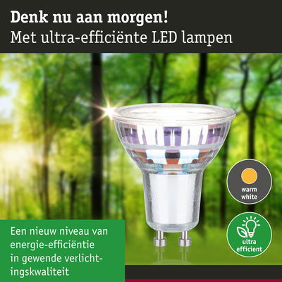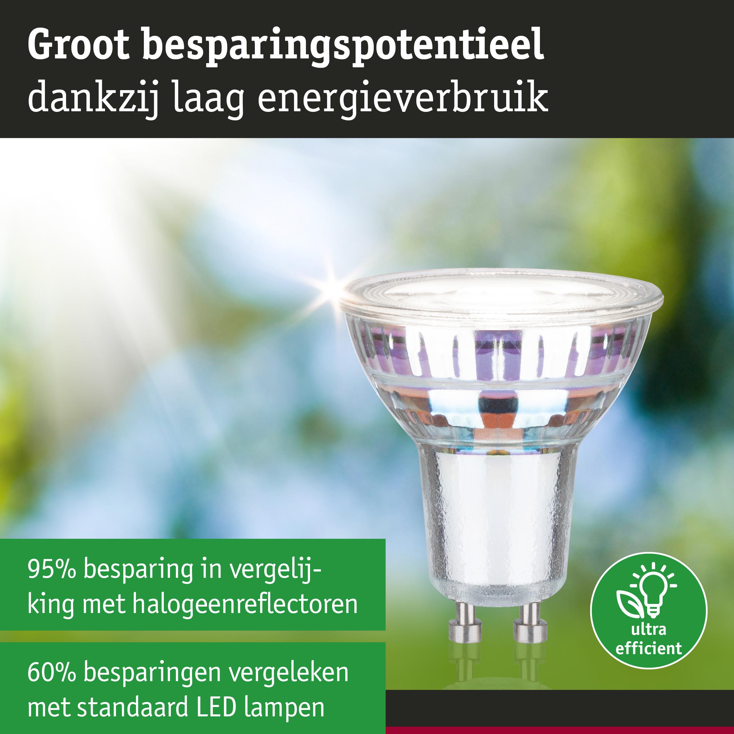 De uiterst efficiënte verlichtingsmiddelen van Eco-Line combineren innovatie met duurzaamheid. Door het 60% lagere energieverbruik en de aanzienlijk langere levensduur ten opzichte van standaard LED-lampen zijn de energiekosten aanzienlijk lager en daarnaast is het ook nog goed voor het milieu. De reflectorlampen met 4000K en een vermogen van 2,5W en 450lm zorgen voor gericht licht in spreidlichten, spots en downlights. De lichtkegel plaatst decoratie en inrichtingsvoorwerpen in de kijker. De lamp past in elke gangbare GU10 fitting. De Paulmann LED-lampen met Eye Friendly label bieden oogvriendelijk en comfortabel licht. Bij het werken, lezen of ontspannen zorgen de lampen voor het beste zichtcomfort.