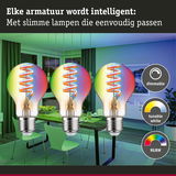 De LED-peren met RGBW+ en een vermogen van 3 x 6,3 W en 3 x 470 lm creëren een aangenaam gelijkmatig licht. De lampen passen in elke gangbare E27 fitting. Het verlichtingsmiddel is compatibel met Zigbee 3.0. Zigbee 3.0 is een draadloos overdrachtsprotocol dat apparaten van verschillende fabrikanten met elkaar verbindt. Afhankelijk van uw stemming kunt u kiezen uit echt warmwit, gekleurd licht en verschillende effecten. Peertjes zijn de kleinste schroeflampen en echte allrounders. Doordat ze zo klein zijn, kunnen ze zowel in lichtkettingen, vitrines als koelkasten worden ingezet. De Paulmann LED-lampen met Eye Friendly label bieden oogvriendelijk en comfortabel licht. Bij het werken, lezen of ontspannen zorgen de lampen voor het beste zichtcomfort.