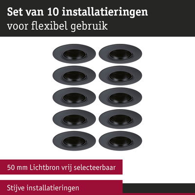 Inbouwlamp Set van 10 star rond 90mm GU10 max. 10x10W 230V dimbaar Zwart