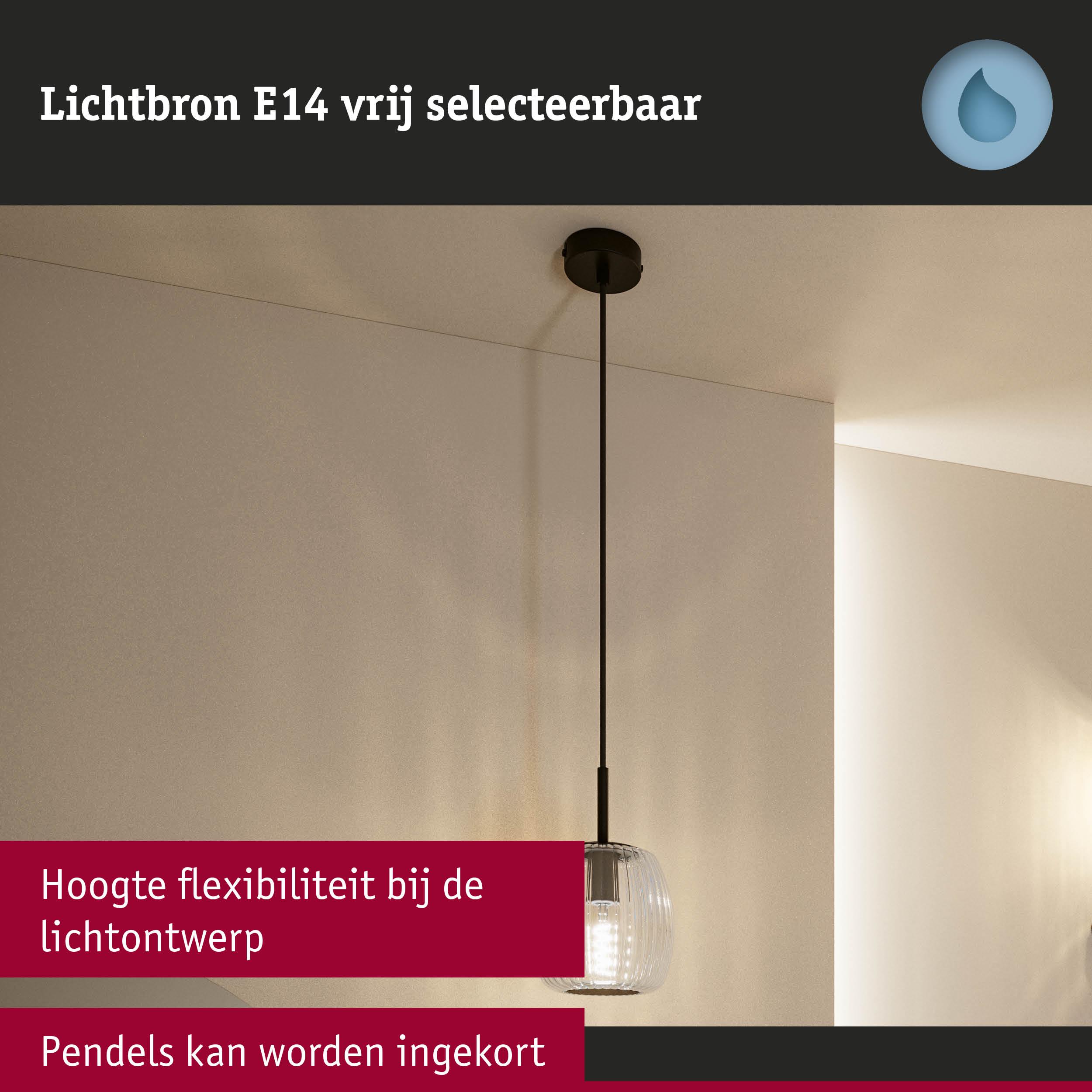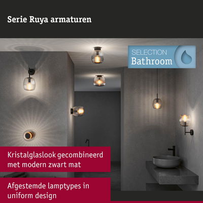 De hanglamp Ruya in Glas/Zwart mat is een elegant accessoire, dat elke ruimte een stijlvol accent geeft. Het heldere kristalglas zorgt voor schitterende lichteffecten en creëert een aangename sfeer. Door de IP44-beschermingsklasse is de Ruya ook geschikt om in vochtige ruimtes zoals badkamers of keukens voor speciale verlichtingsaccenten te zorgen. Om aan individuele behoeften te voldoen, omvat de serie Ruya verschillende soorten armaturen voor wand, plafond of op spiegels. De pendellengte van de Ruya is individueel inkortbaar over een lengte van 700 tot 1.500 mm.