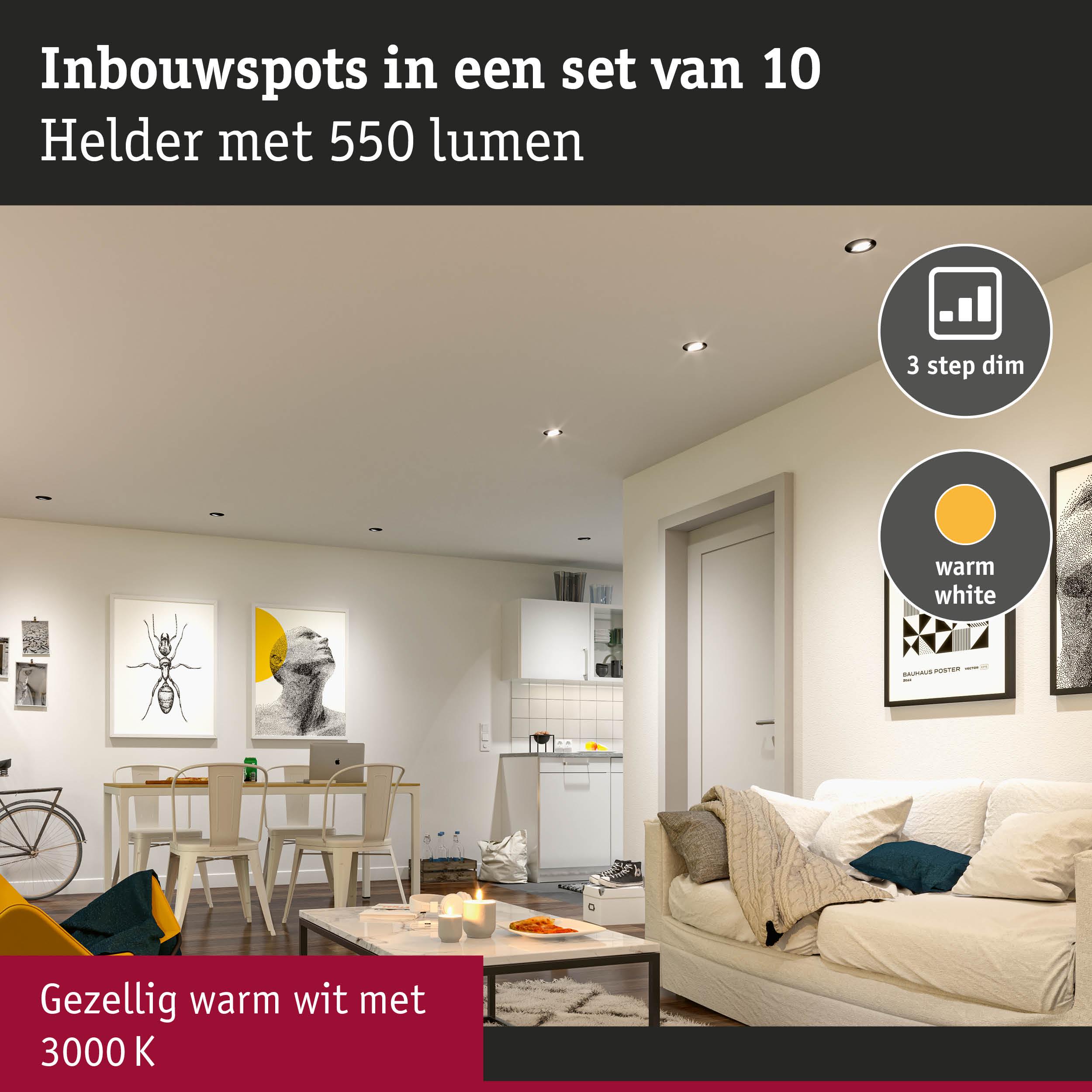 LED-inbouwlamp 3-Step-Dim Set van 10 zwenkbaar rond 82mm 70° 10x4,8W 10x450lm 230V dimbaar 3000K Wit
