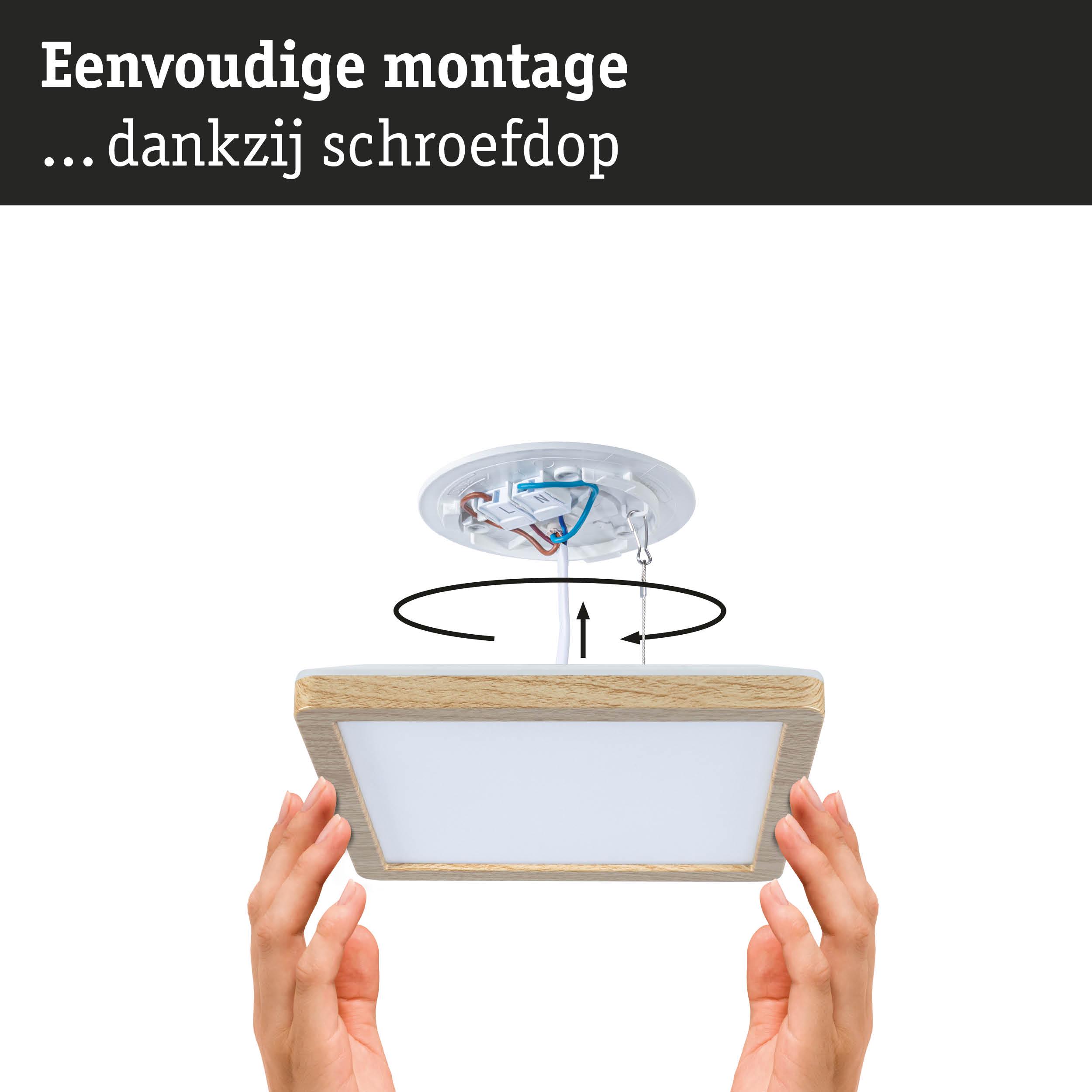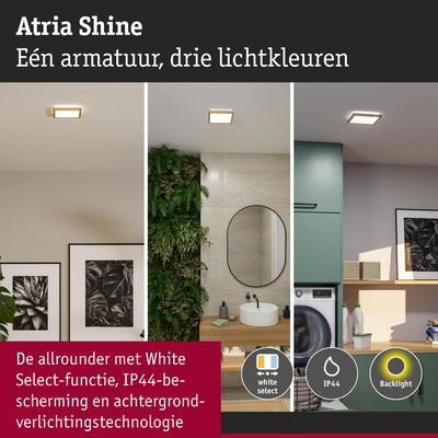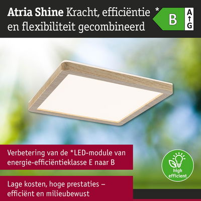 Het hoekige Atria Shine Panel in Houtlook is met zijn hoge energie-efficiëntie en vele lichtkleuren een echte allrounder! Met zijn verbeterde energie-efficiëntie, die is verhoogd van klasse E naar klasse B, biedt het nieuwe Atria Shine Panel een innovatieve en toekomstbestendige verlichtingsoplossing. Het aanzienlijk lagere energieverbruik is niet alleen goed voor het milieu, maar dankzij de lage energiekosten ook goed voor uw portemonnee. Met een grootte van ${Abmessung} en een vermogen van 9,5 watt is het LED Panel behalve als basisverlichting voor woon- en slaapkamers ook geschikt voor gebruik in badkamers, keukens of andere vochtige ruimtes. Voor de montage kan er via de White Select schakelaar tussen drie lichtkleuren worden gekozen: warmwit (3000 K), neutraal wit (4000 K) of daglicht wit (6500 K). Voor een gezellige woonkamer, voor functionele verlichting in de keuken of voor een goed verlicht thuiskantoor - elke ruimte vraagt om de juiste lichtsfeer. Optisch overtuigt het armatuur dankzij de effectvolle backlight-techniek met een nagenoeg zwevend verschijningsbeeld. Door zijn sobere design past hij optimaal in individuele interieurstijlen en kan dankzij de IP44-bescherming ook in de badkamer worden gebruikt. De montage aan de wand of aan het plafond is met de eenvoudige draaisluiting en snelklem heel gemakkelijk.