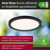 Het ronde Atria Shine Panel in Zwart is met zijn hoge energie-efficiëntie en vele lichtkleuren een echte allrounder! Met zijn verbeterde energie-efficiëntie, die is verhoogd van klasse E naar klasse B, biedt het nieuwe Atria Shine Panel een innovatieve en toekomstbestendige verlichtingsoplossing. Het aanzienlijk lagere energieverbruik is niet alleen goed voor het milieu, maar dankzij de lage energiekosten ook goed voor uw portemonnee. Met een grootte van ${Abmessung} en een vermogen van 9,5 watt is het LED Panel behalve als basisverlichting voor woon- en slaapkamers ook geschikt voor gebruik in badkamers, keukens of andere vochtige ruimtes. Voor de montage kan er via de White Select schakelaar tussen drie lichtkleuren worden gekozen: warmwit (3000 K), neutraal wit (4000 K) of daglicht wit (6500 K). Voor een gezellige woonkamer, voor functionele verlichting in de keuken of voor een goed verlicht thuiskantoor - elke ruimte vraagt om de juiste lichtsfeer. Optisch overtuigt het armatuur dankzij de effectvolle backlight-techniek met een nagenoeg zwevend verschijningsbeeld. Door zijn sobere design past hij optimaal in individuele interieurstijlen en kan dankzij de IP44-bescherming ook in de badkamer worden gebruikt. De montage aan de wand of aan het plafond is met de eenvoudige draaisluiting en snelklem heel gemakkelijk.