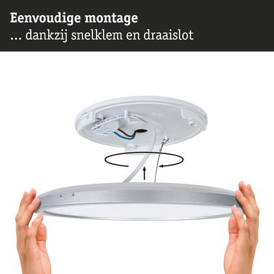 Het veelzijdige paneel Atria Shine met een diameter van 400mm biedt zowel directe als indirecte verlichting door de afzonderlijk bestuurbare front- en backlight-techniek. Kan gemakkelijk worden bestuurd via een wandschakelaar door meerdere keren snel in en uit te schakelen. Hierdoor kan afhankelijk van de stemming of toepassingssituatie tussen volle verlichting, alleen het frontlight of alleen het sfeervolle backlight worden gevarieerd. Dankzij de geheugenfunctie wordt de gekozen lichtscène opgeslagen, zodat de lamp bij de volgende keer inschakelen in de vooraf gekozen lichtintensiteit brandt. Het paneel zorgt voor een gelijkmatige verlichting in binnenruimtes en creëert door de warmwitte lichtkleur van 3000 K een huiselijke sfeer. Het subtiele design van het paneel overtuigt door zijn bijzondere vlakke constructie en dankzij de sfeervolle backlight-technologie lijkt het paneel op een subtiele manier te zweven. Montage aan wand of plafond is dankzij de snelklem en draaivergrendeling heel eenvoudig en ongecompliceerd uitvoerbaar