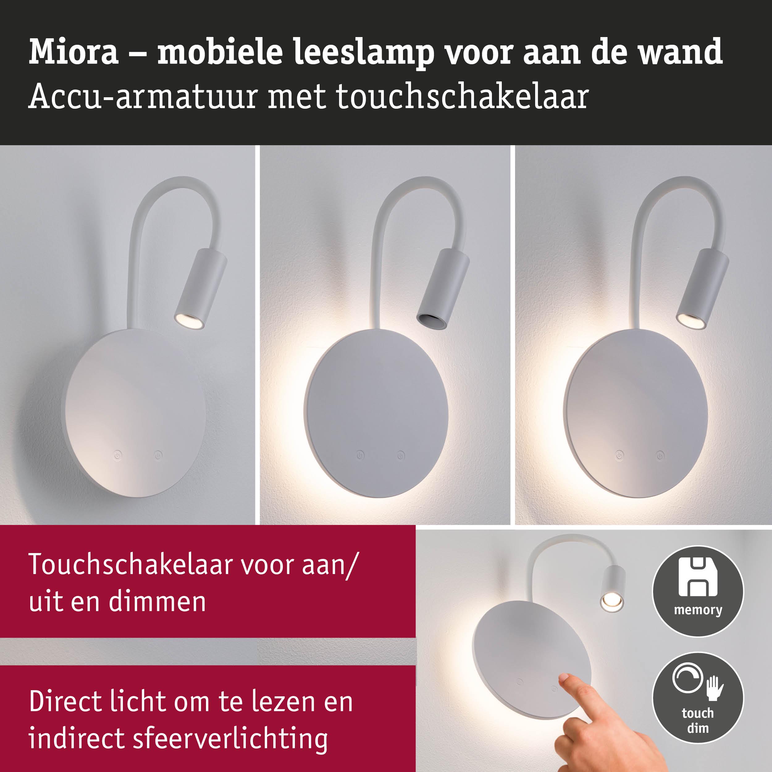 LED wandlamp op accu Miora 2700K 78lm / 82lm 3,7V 0,6W / 0,7W dimbaar Wit