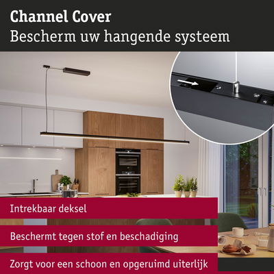 De praktische 1 m afdekking voor de rechte lichtcomponenten van het Linion systeem biedt een aantrekkelijke oplossing om bij een pendelmontage de componenten aan de binnenkant van het kanaal te beschermen tegen stof. Hij kan aan de achterkant ingeschoven worden en zorgt zo voor een eenvoudige montage en demontage. Indien nodig kan de afdekking ingekort worden. Qua kleur past hij naadloos bij het lichtkanaalsysteem Linion en zorgt voor een esthetisch en strak uiterlijk van de pendelmontage.