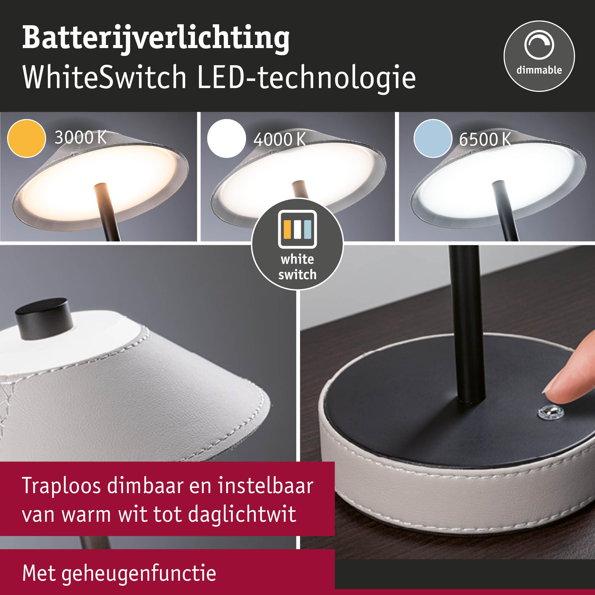 Deze buitengewone tafellamp in een leerlook met elegante doorgestikte naden is niet alleen een echte blikvanger maar ook zeer handig en flexibel inzetbaar. Woonkamer, slaapkamer of gang, de mobiele tafellamp Pellini in Beige/Zwart mat zorgt voor gezellig licht en creëert met het unieke design stijlvolle accenten. Dankzij de lichtuittreding naar boven en beneden creëert de Pellini een aangename sfeer en kan met behulp van de touchschakelaar individueel worden ingesteld in verschillende witte lichtkleuren. Bovendien is deze lamp traploos dimbaar zodat het licht individueel kan worden aangepast. Daarnaast zorgt het memory-effect ervoor dat de lamp altijd de laatst gebruikte lichtinstelling onthoudt voor een maximaal comfort. De mobiele tafellamp Pellini overtuigt niet alleen met functionaliteit maar ook met een praktische hantering. Met de korte laadtijd en lange verlichtingsduur is ze altijd klaar voor gebruik en dankzij de via USB-C oplaadbare accu's milieuvriendelijk en duurzaam.