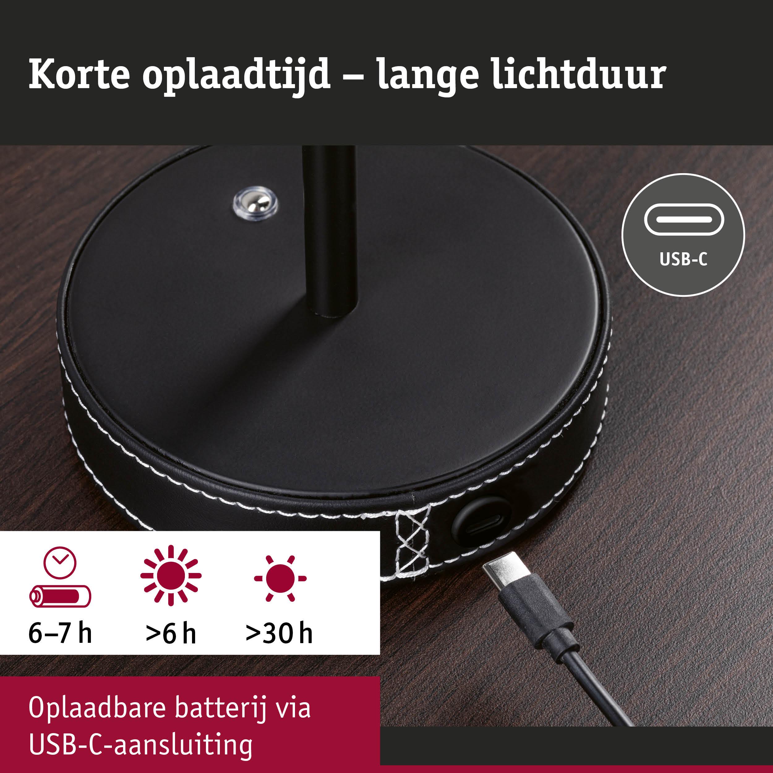 Deze buitengewone tafellamp in een leerlook met doorgestikte naden is niet alleen een echte blikvanger maar ook zeer handig en flexibel inzetbaar. Woonkamer, slaapkamer of gang, de mobiele tafellamp Pellini in Zwart mat zorgt voor gezellig licht en creëert met het unieke design stijlvolle accenten. Met de touchschakelaar kunnen verschillende lichtkleuren worden ingesteld. Bovendien is deze lamp dimbaar zodat het licht individueel kan worden aangepast. Daarnaast zorgt het memory-effect ervoor dat de lamp altijd de laatst gebruikte lichtinstelling onthoudt voor een maximaal comfort. De mobiele tafellamp Pellini overtuigt niet alleen met functionaliteit maar ook met een praktische hantering. Met de korte laadtijd en lange verlichtingsduur is ze altijd klaar voor gebruik en dankzij de via USB-C oplaadbare accu's milieuvriendelijk en duurzaam.