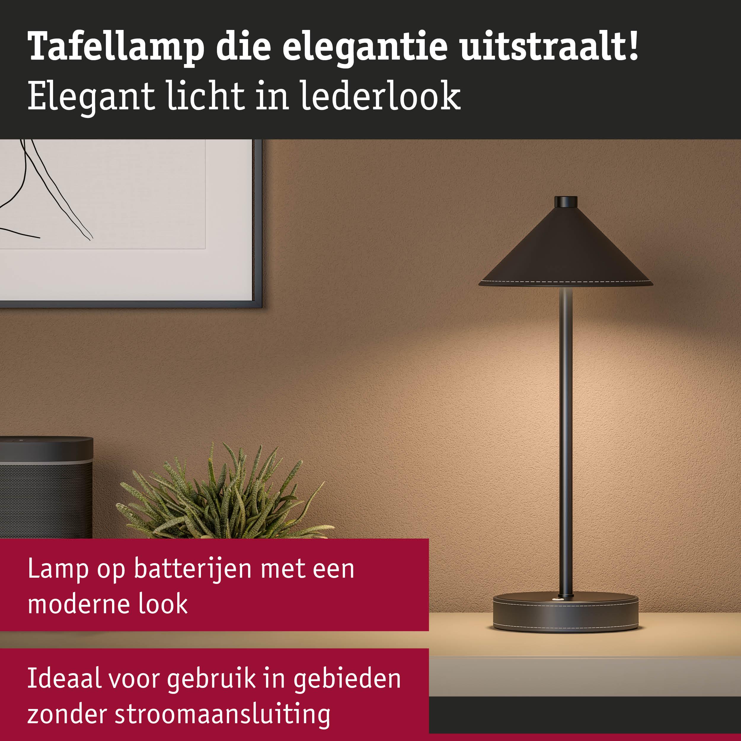 - Buitengewone tafellamp in een leerlook met doorgestikte naden voor een stijlvolle woonsfeer.