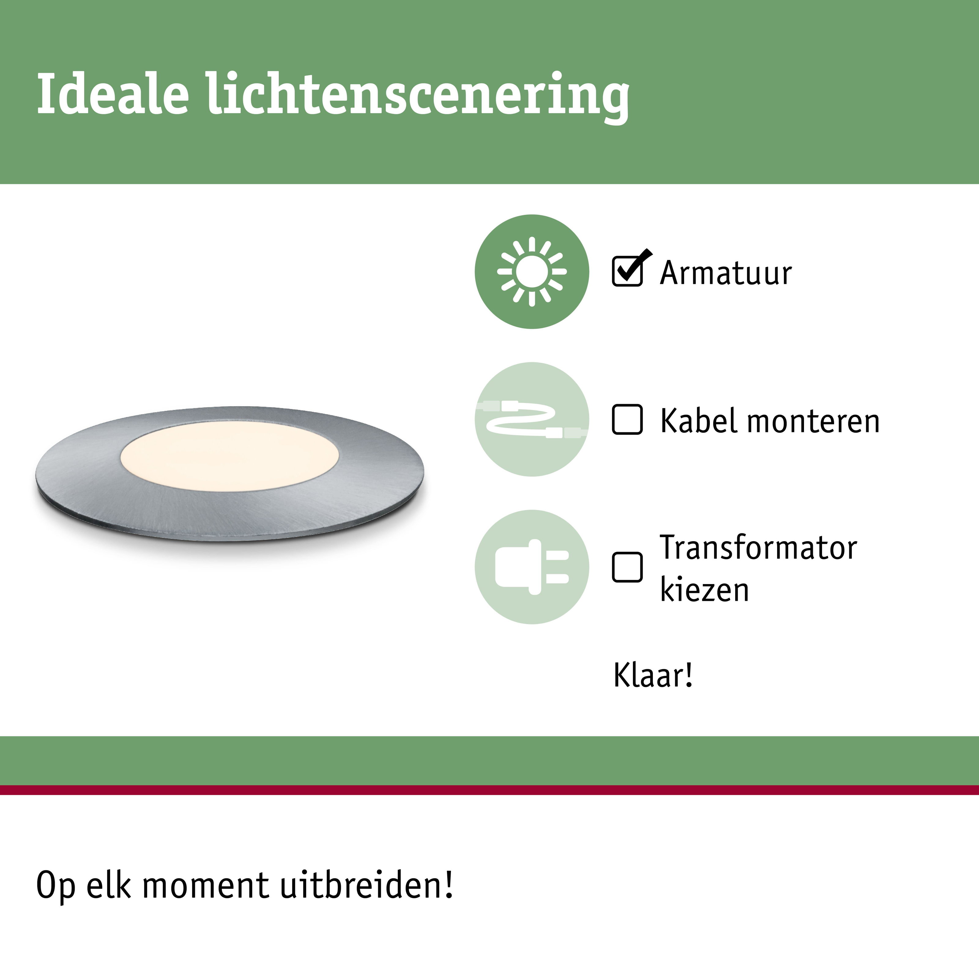 | Gebruik | Voor decoratieve lichtpunten aan paden, opritten of terrassen |