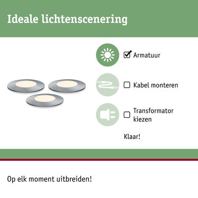 Plug & Shine LED-grondinbouwlamp Floor Mini Uitbreidingsset IP67 3000K 3x2,5W Zilver