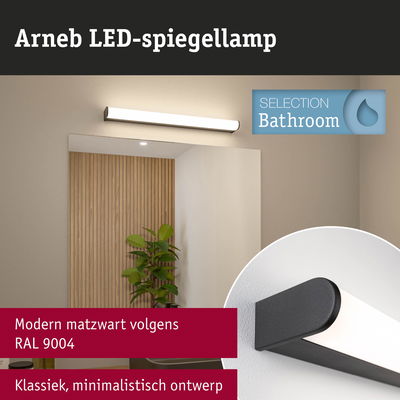 Selection Bathroom LED-wandlamp Arneb IP44 3000K 1000lm 230V 12,5W Zwart