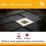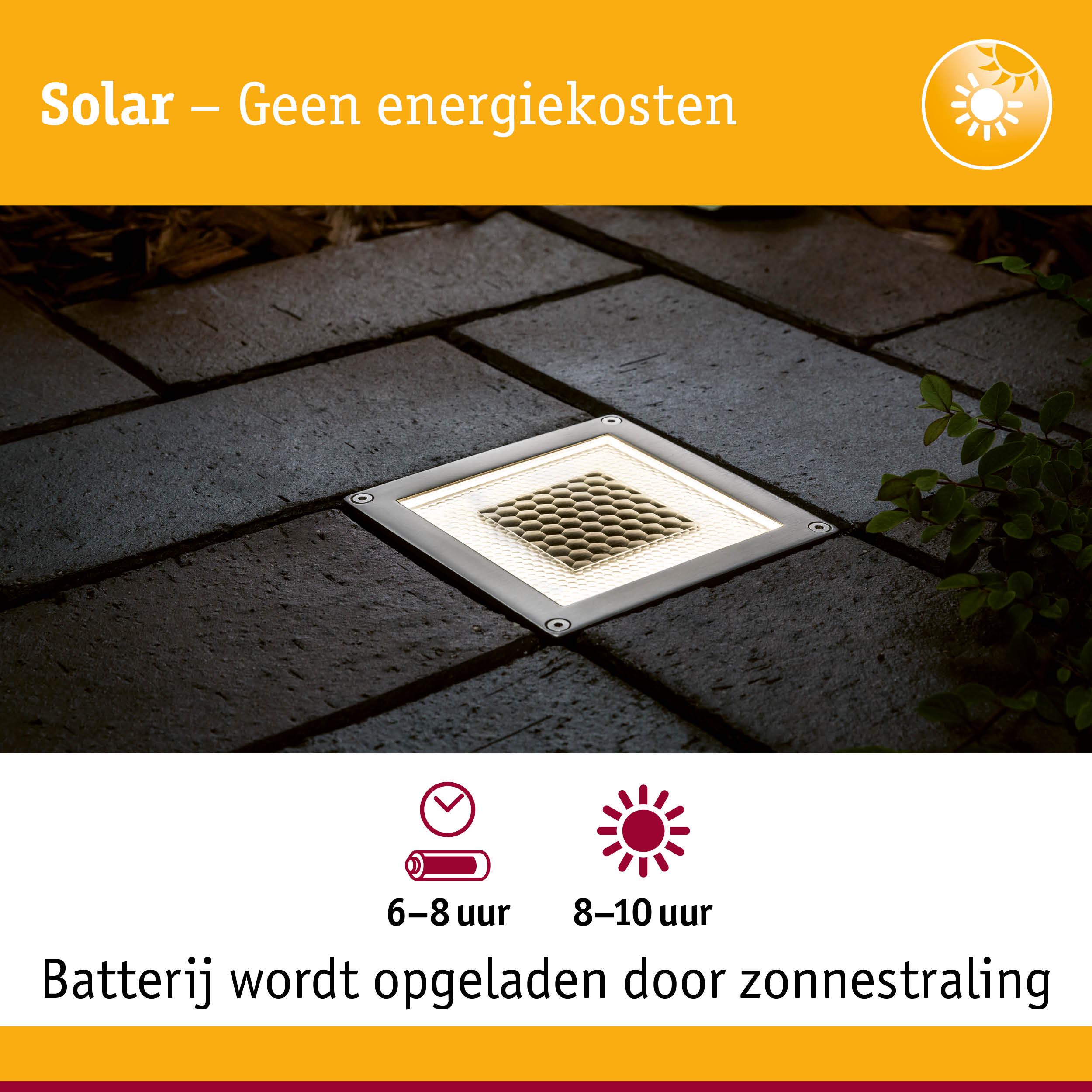 Licht op elke plaats in de tuin - zonder een kabel te installeren - met deze solaire bodeminbouwlamp is dat nu mogelijk. Dankzij zonnecellen komt de bodeminbouwlamp helemaal rond zonder stroom. Overdag worden de verwisselbare accu's door zonnelicht opgeladen en in het donker beginnen de LEDs te schijnen. De bodeminbouwlamp is dankzij beschermingsgraad IP67 gegarandeerd waterdicht, roestvast en geschikt voor de inbouw in berijdbare zones buitenshuis - de lamp draagt met gemak tot 500 kg.