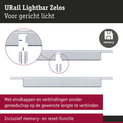 De URail Lightbar Zelos in Chroom mat met een kleurtemperatuur van 4000K creëert een actieve, neutraal witte verlichtingssfeer in woonkamers, studeerkamers, gangen of andere ruimtes. De gelijnde lenzen zorgen voor gericht licht. Gemaakt van hoogwaardig aluminium en met een eenvoudig ontwerp past de lamp naadloos in individuele woonconcepten. Is de lengte van 32,2 cm niet ideaal? Geen probleem - om de perfecte lengte voor verschillende kamers te krijgen, kunnen de Lightbar op elke lengte aan elkaar gekoppeld worden. De eindkappen kunnen eenvoudig worden verwijderd en verlengd tot de gewenste lengte met behulp van de meegeleverde verbinden. Koppelen met de Ceris Lightbars met diffusor is ook zonder problemen mogelijk. Ga verder naar de Step dimfunctie, waarmee de helderheid in drie stappen kan worden ingesteld met een standaard lichtschakelaar. Extra comfort biedt de geheugenfunctie, die de laatst geselecteerde lichtinstelling opslaat tot de volgende keer dat de lamp wordt ingeschakeld.
