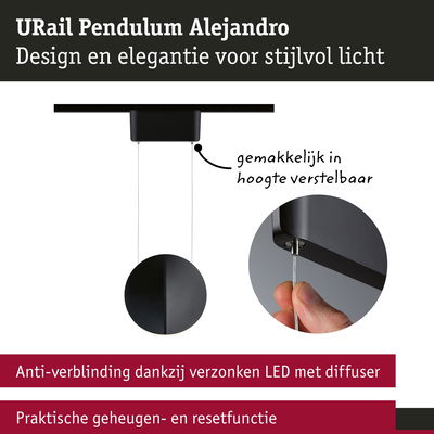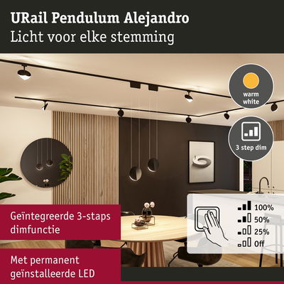 De URail hanglamp Alejandro in Zwart mat is een blikvanger aan het plafond en geeft met het stijlvolle design de ruimte een extra accent. Met de 3-Step-Dim functie kan het licht eenvoudig worden geregeld via de bestaande wandschakelaar zonder dat er een extra wanddimmer nodig is. Met de dimniveaus van 100%, 50% en 25% biedt de hanglamp een flexibele lichtbesturing, die voor elke stemming en situatie geschikt is. De 3000 kelvin zorgen voor een aangenaam warmwit licht, dat de ruimte optimaal verlicht. Door de verzonken LED-chips met diffusor wordt het licht niet verblindend en gelijkmatig verdeeld, hetgeen voor een aangename sfeer zorgt. Bijzonder praktisch is de memory- en resetfunctie, die het mogelijk maakt om de laatste helderheidsinstelling te behouden of opnieuw in te stellen indien dat nodig is. Het design van de hanglamp voegt een zekere elegantie toe aan elke ruimte en plaatst stijlvolle accenten.