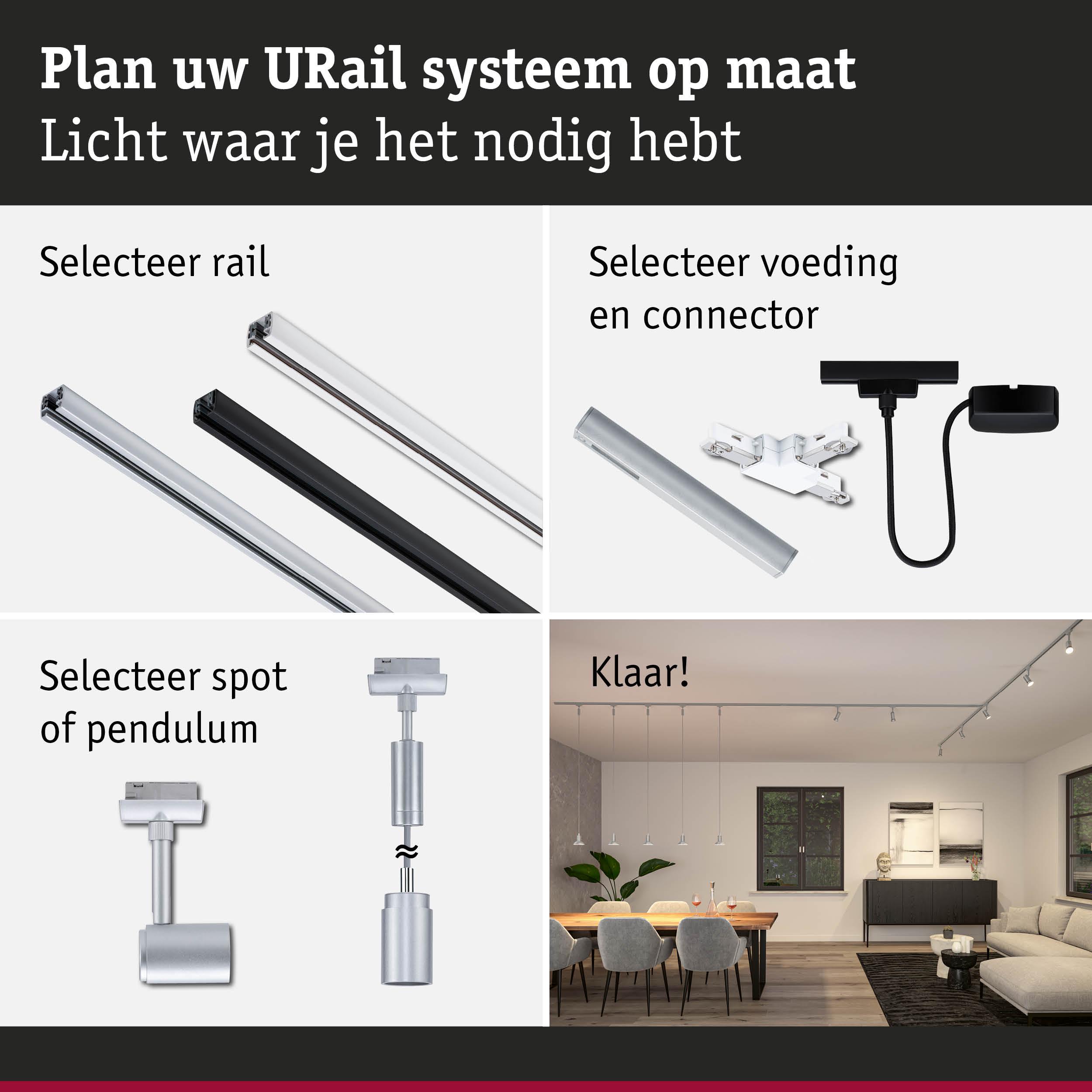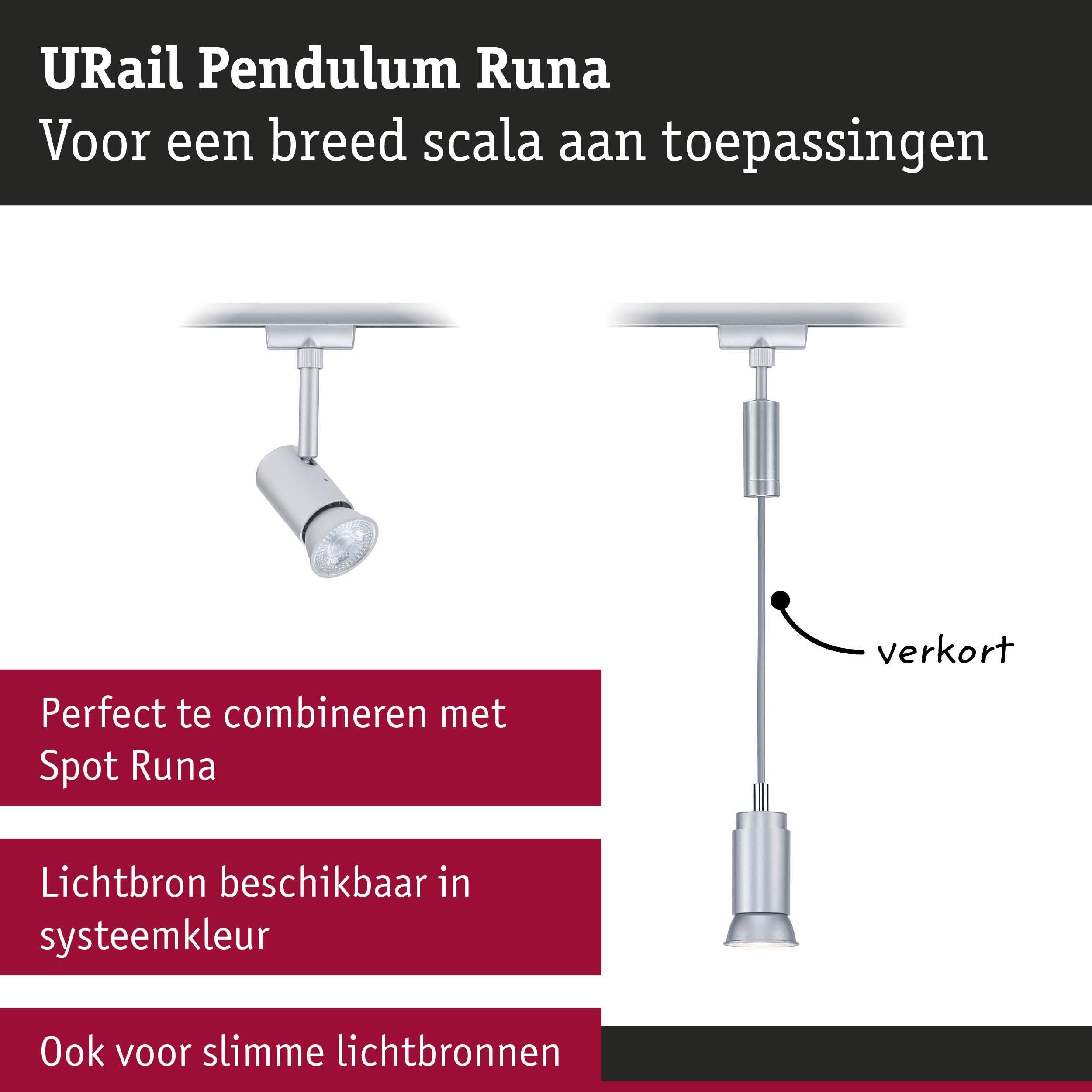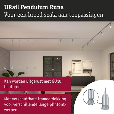 URail Pendels Runa GU10 max. 10W dimbaar 230V Chroom mat