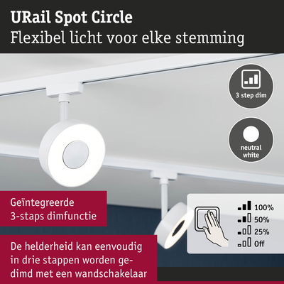 URail Railspot 3-Step-Dim Circle Losse spot 220lm 5W 4000K dimbaar 230V Signaalwit