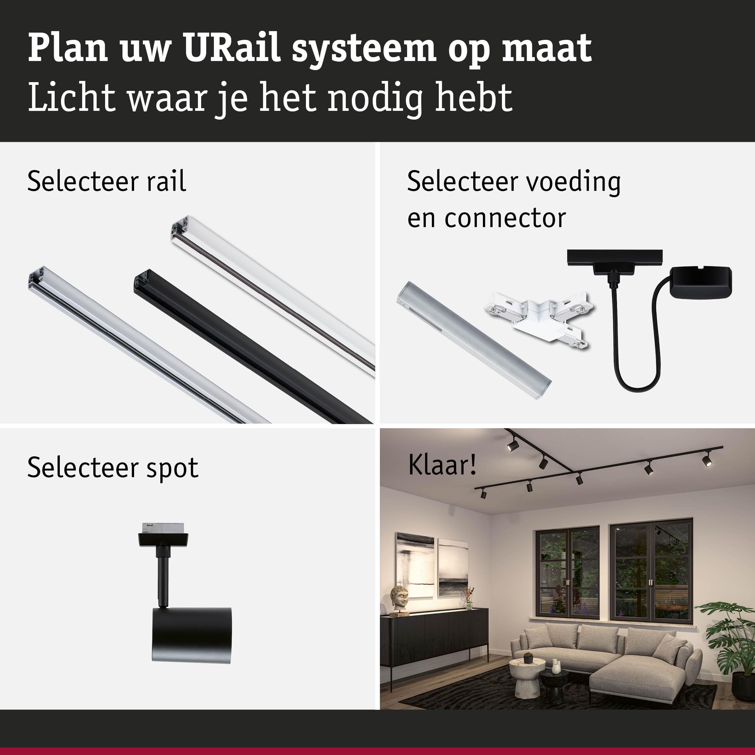 URail Railspot Luxe GU10 max. 10W dimbaar 230V Zwart mat