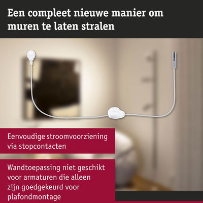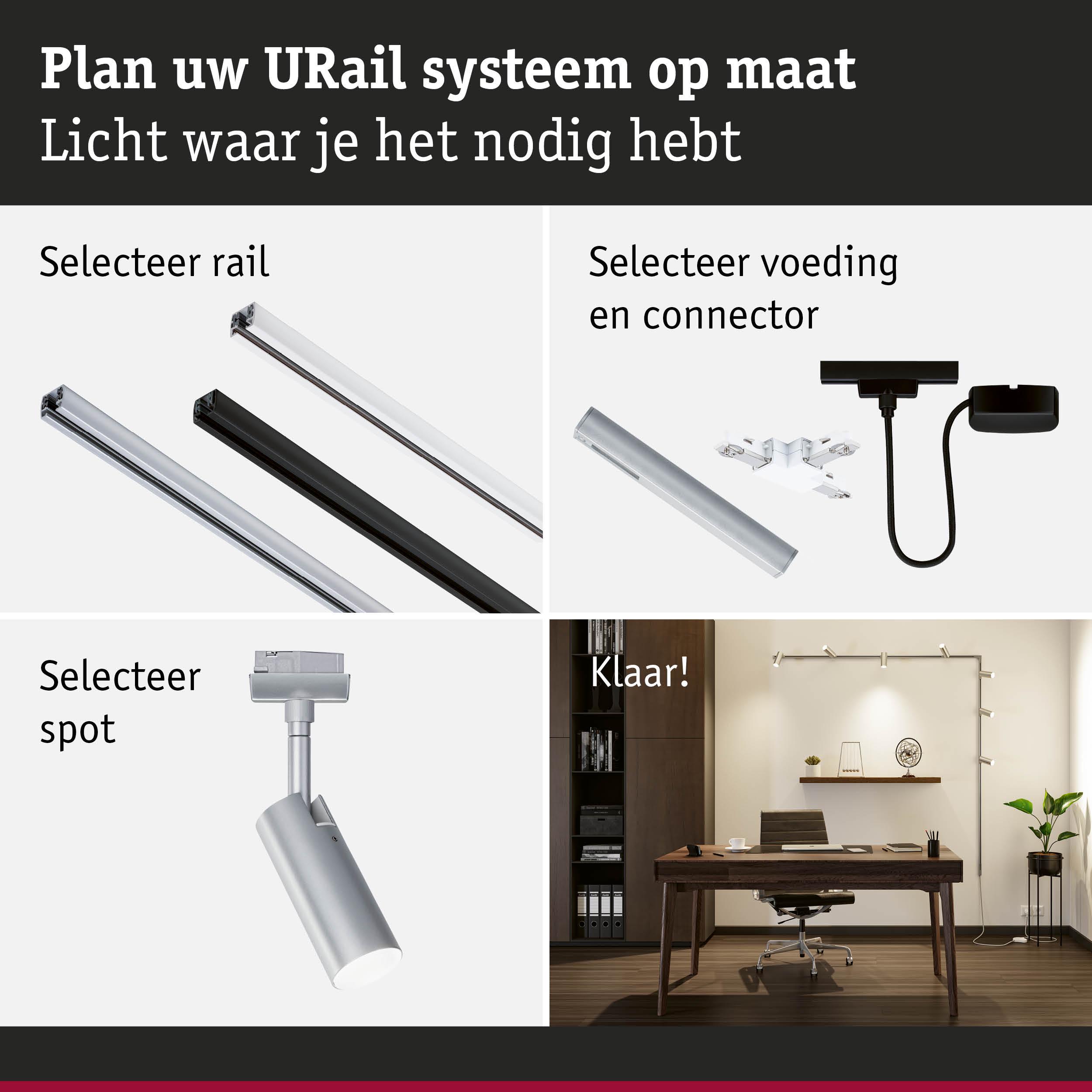 - URail kabelvoeding met eurostekker, kabel en kabelschakelaar maakt horizontale en verticale wandtoepassing mogelijk