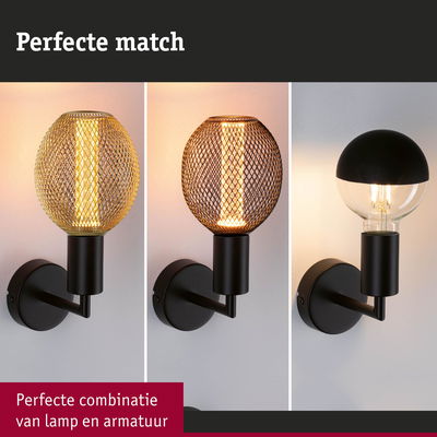De mix & match look is absoluut on trend en stelt je in staat om je huis te verfraaien met een bijzondere blikvanger. De moderne wandlamp Ravi in zwart mat is hiervan het perfecte bewijs. Met haar minimalistische, moderne design en aantrekkelijke kleurencombinatie is ze een echte blikvanger. Dankzij de IP44-bescherming kan de Ravi wandlamp zelfs in de badkamer worden gebruikt. De gunstig geprijsde bundel bevat de Metallic Glow gloeilamp, die er bijzonder harmonieus uitziet in combinatie met de wandlamp. De Metallic Glow LED lichtbron combineert discreet, goudkleurig licht met een decoratieve, messingkleurige metalen korf. Modern design ontmoet efficiënte leer om hier gezellige, gouden accentverlichting te creëren.